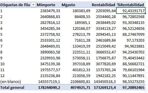 Añádela a la tabla dinámica por meses para comparar periodos.