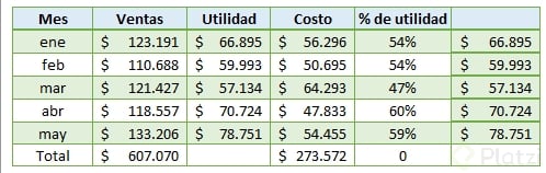 *. - Esto es útil para calcular la utilidad total multiplicando el porcentaje de utilidad por las ventas.