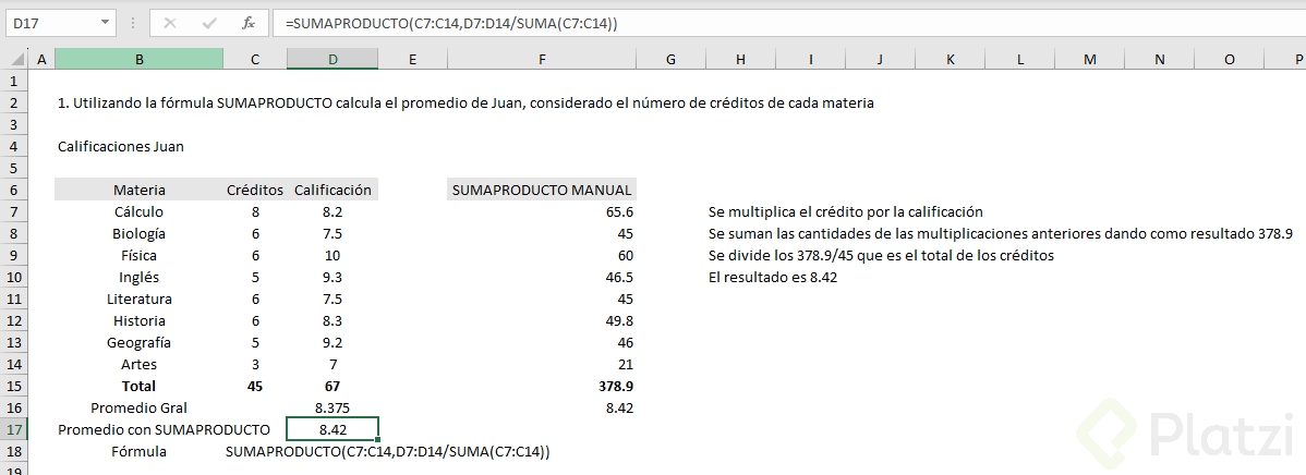 Usando la función SUMA: