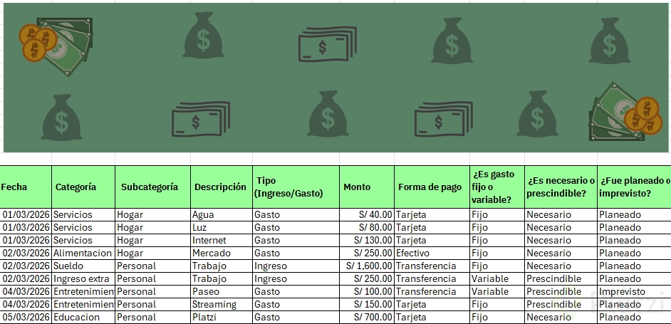 - Antes de avanzar, ingresa tus propios datos (por ejemplo, tus gastos y categorías) en la tabla para experimentar con información real.