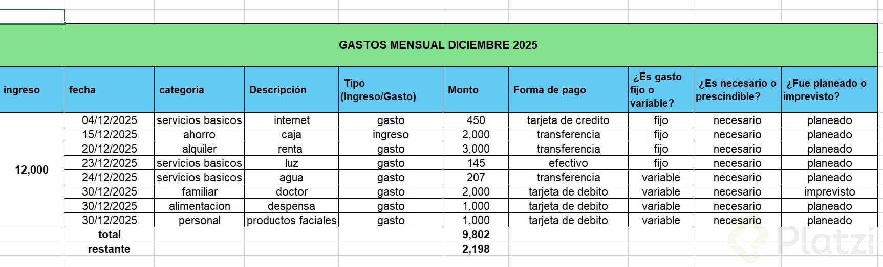 Cuando apliques estas recomendaciones en tu archivo de finanzas, ten en cuenta: