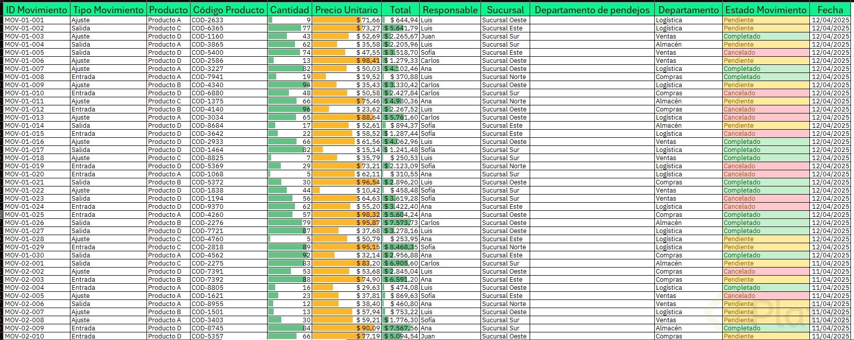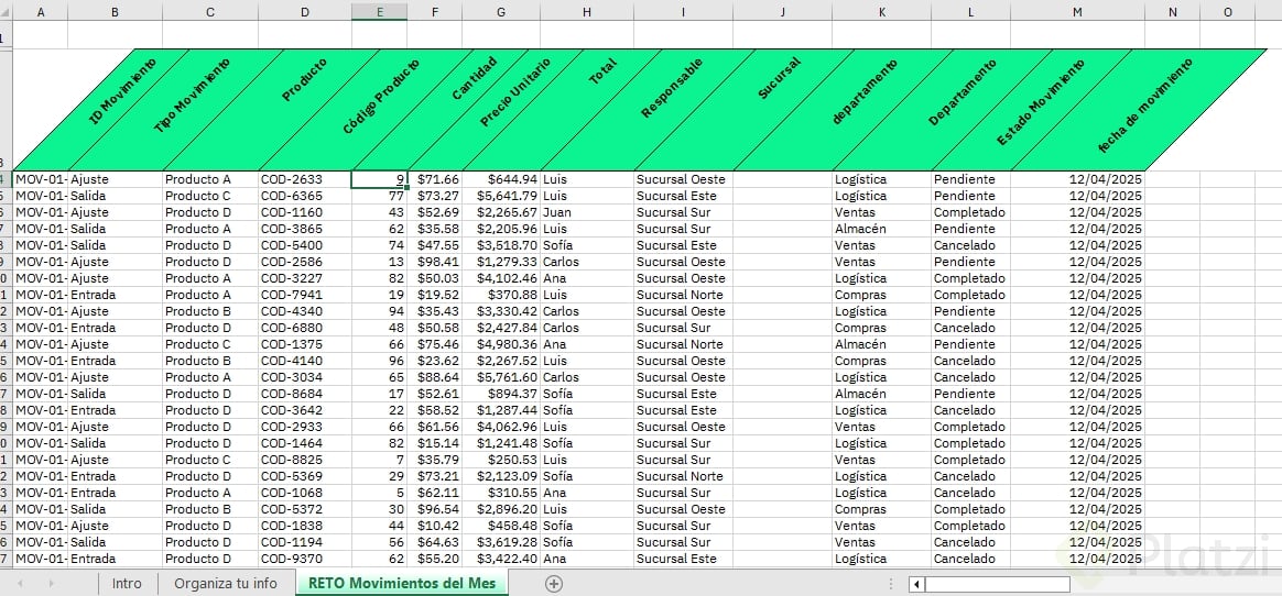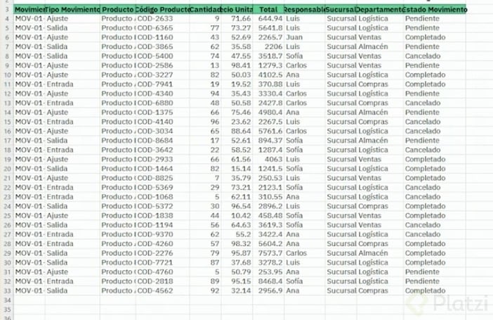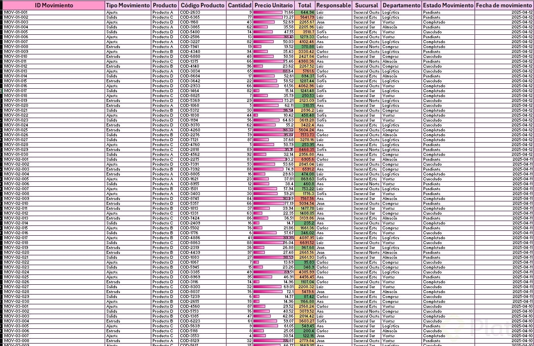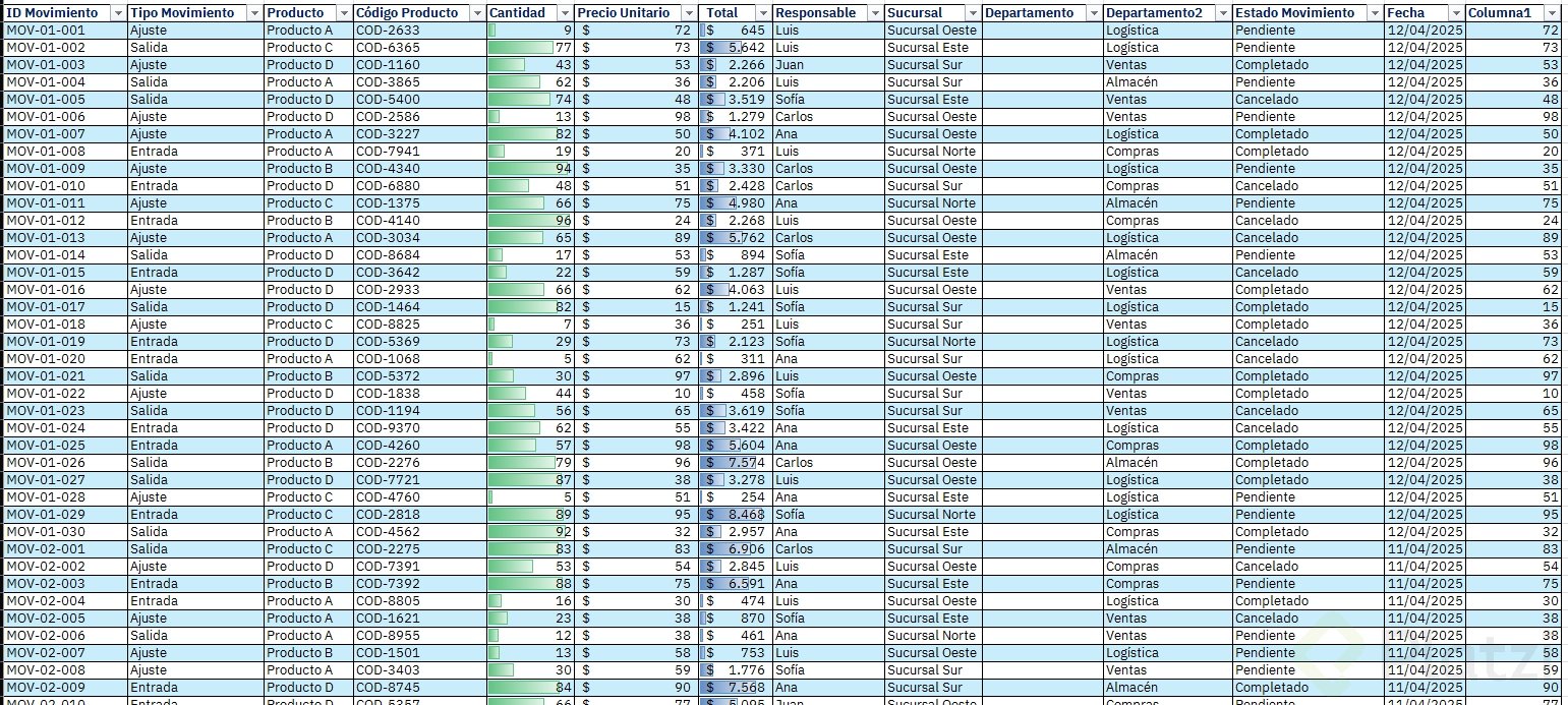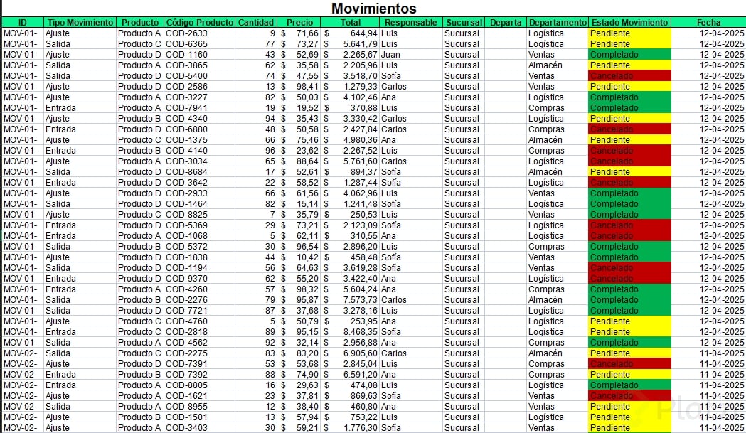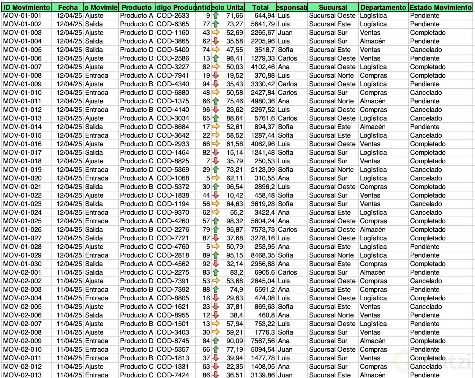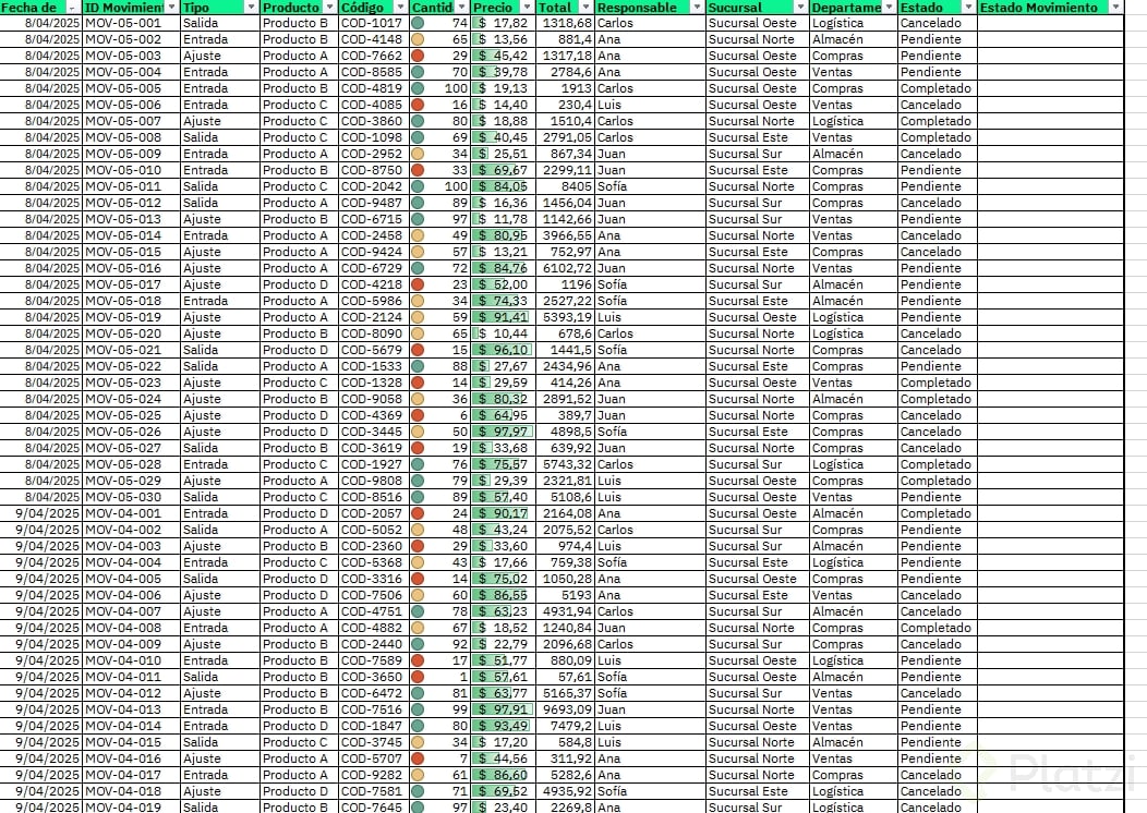 - Si falta un dato clave como "Fecha de movimiento", crea la columna y asigna la fecha correspondiente a cada fila.
