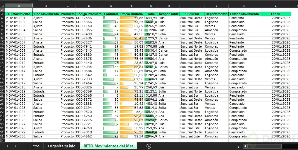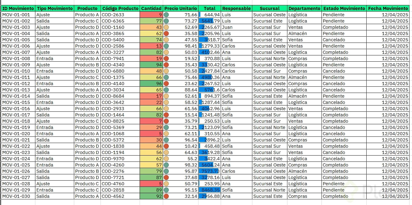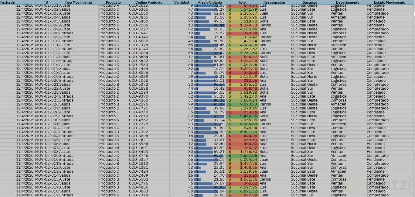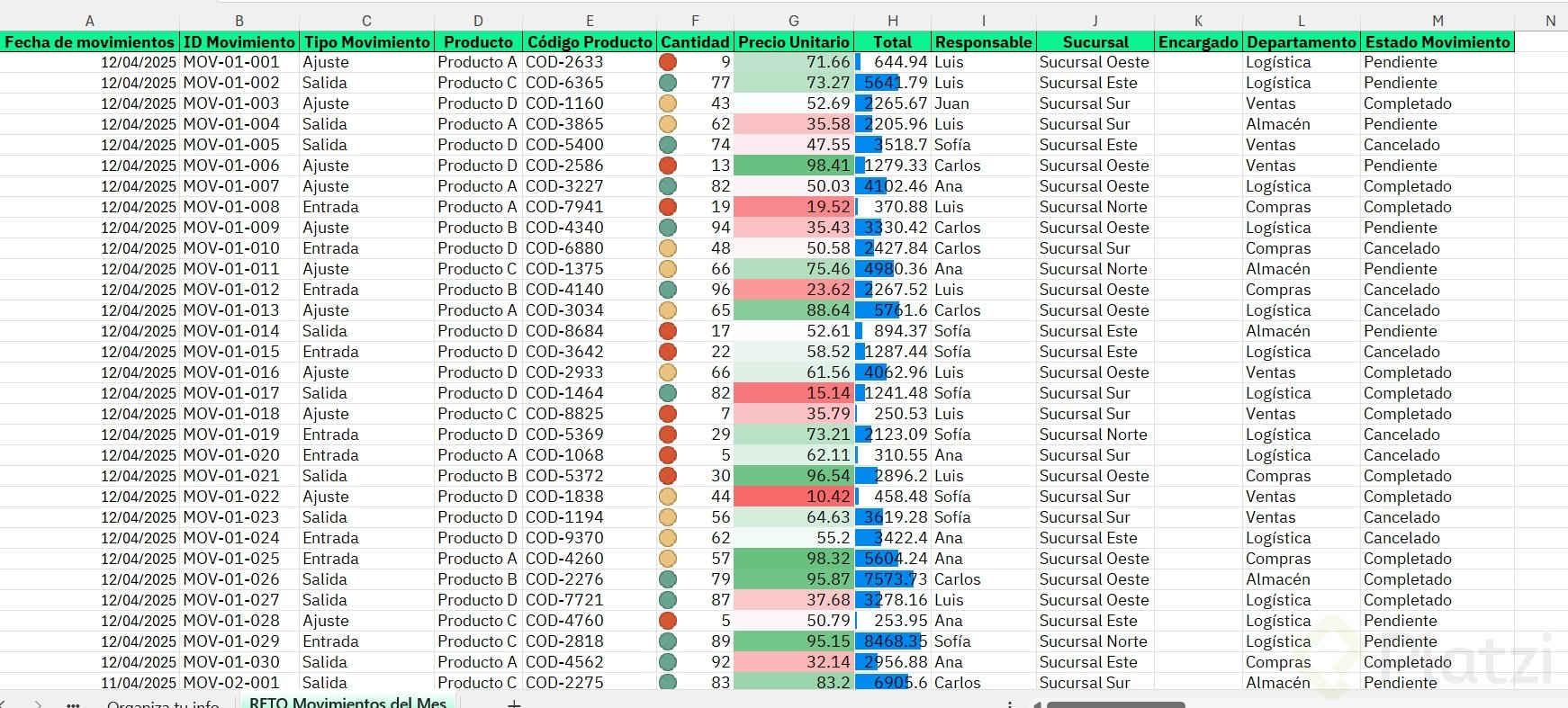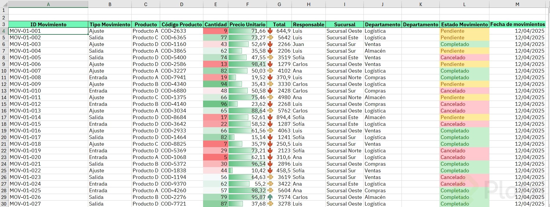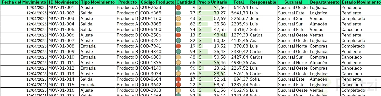 - Si falta un dato clave como "Fecha de movimiento", crea la columna y asigna la fecha correspondiente a cada fila.