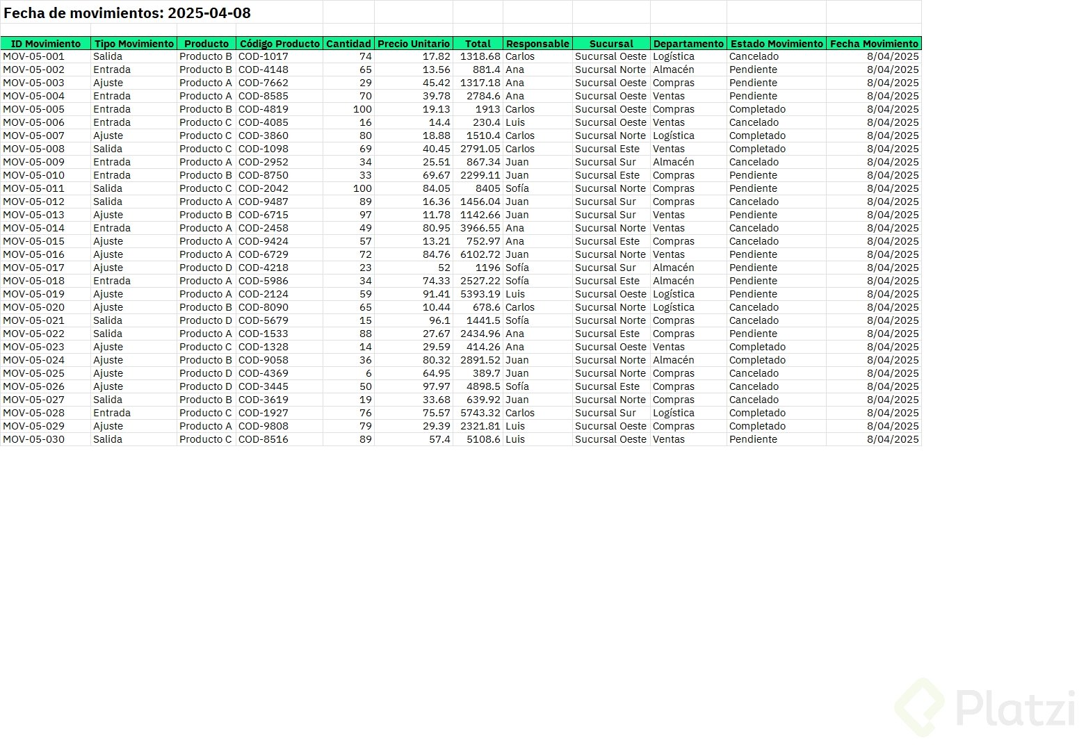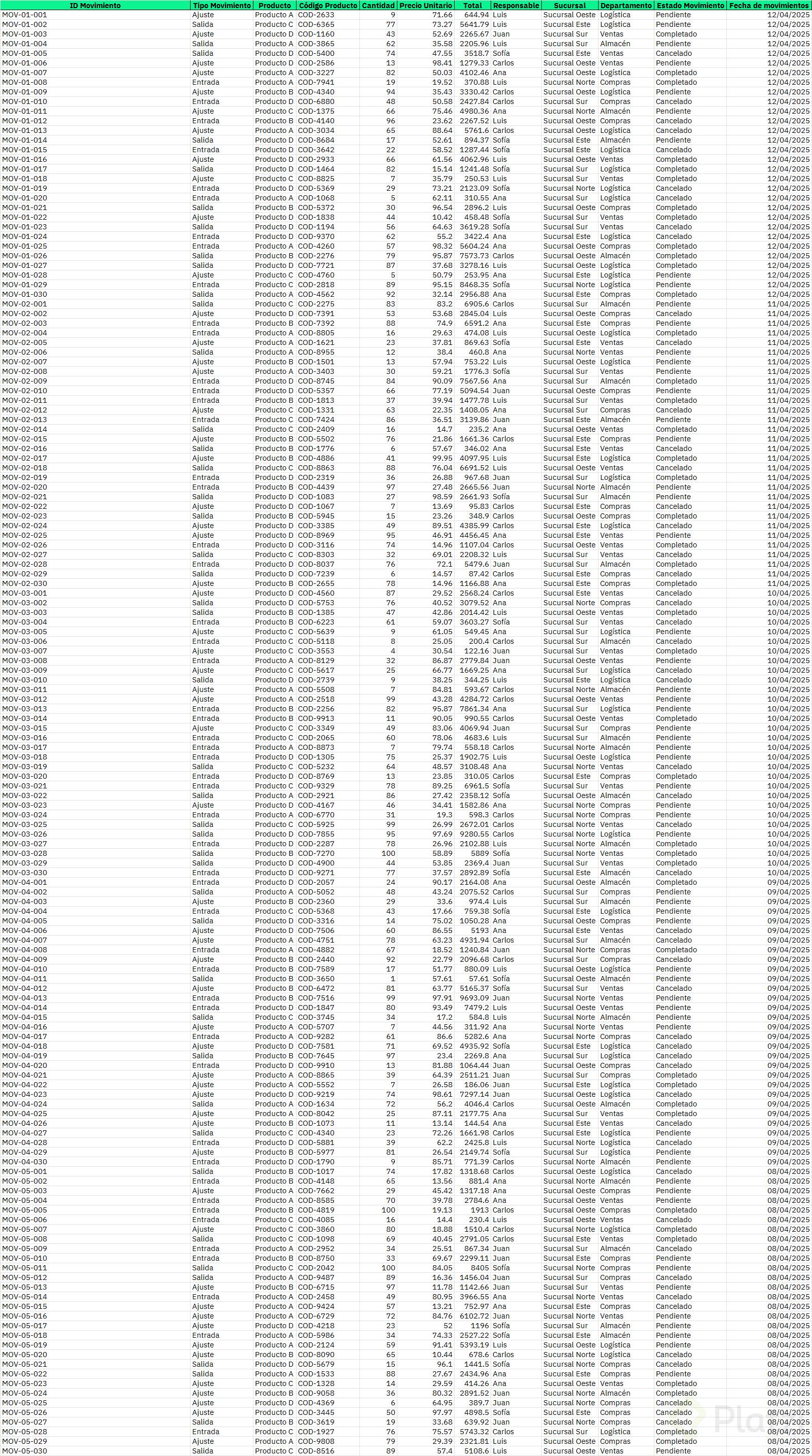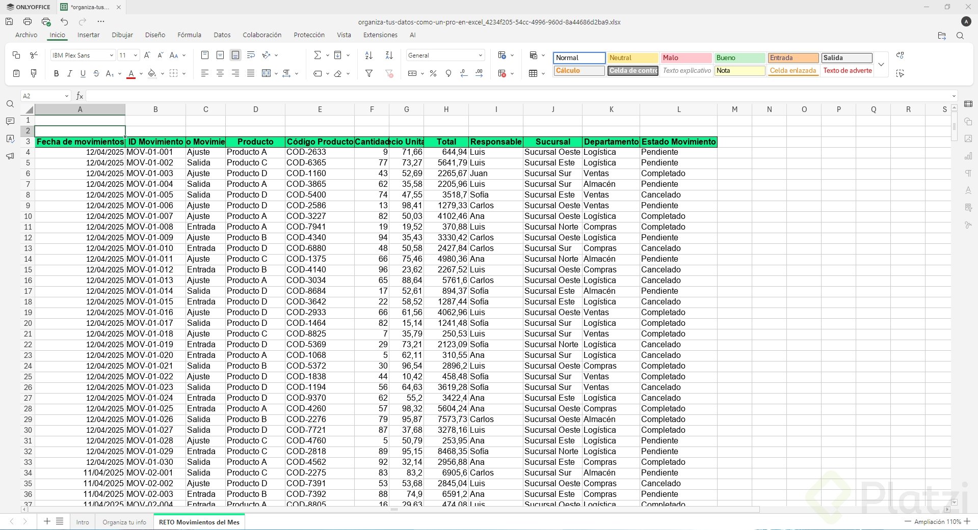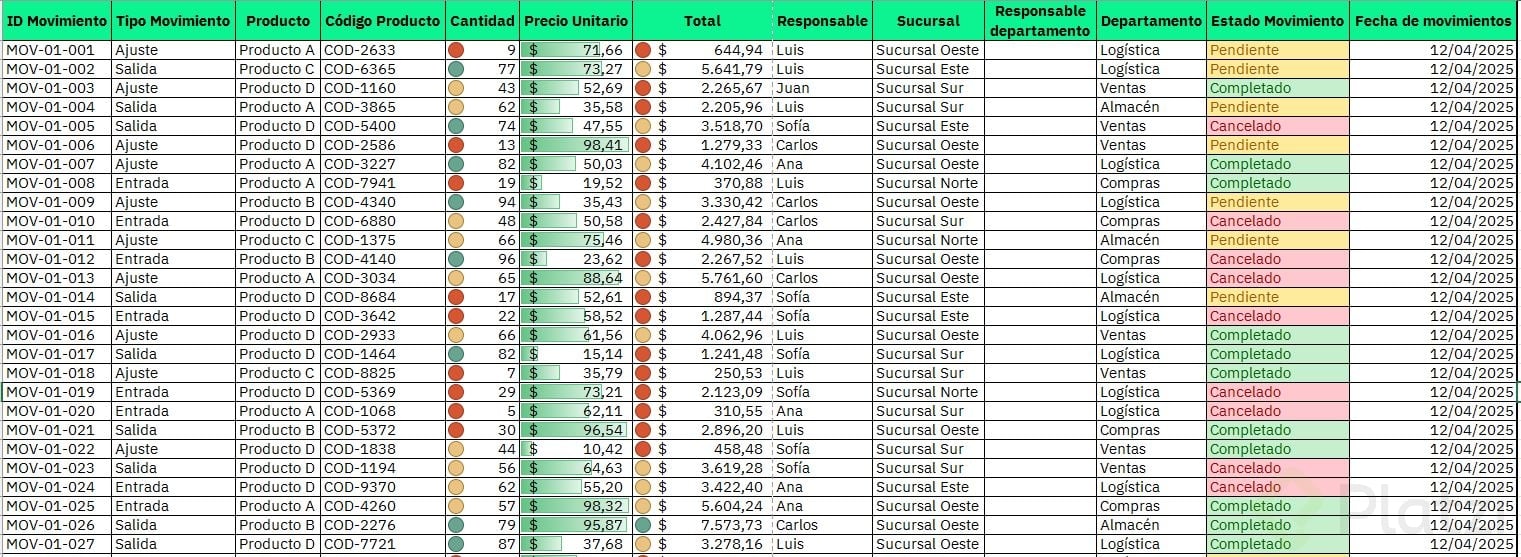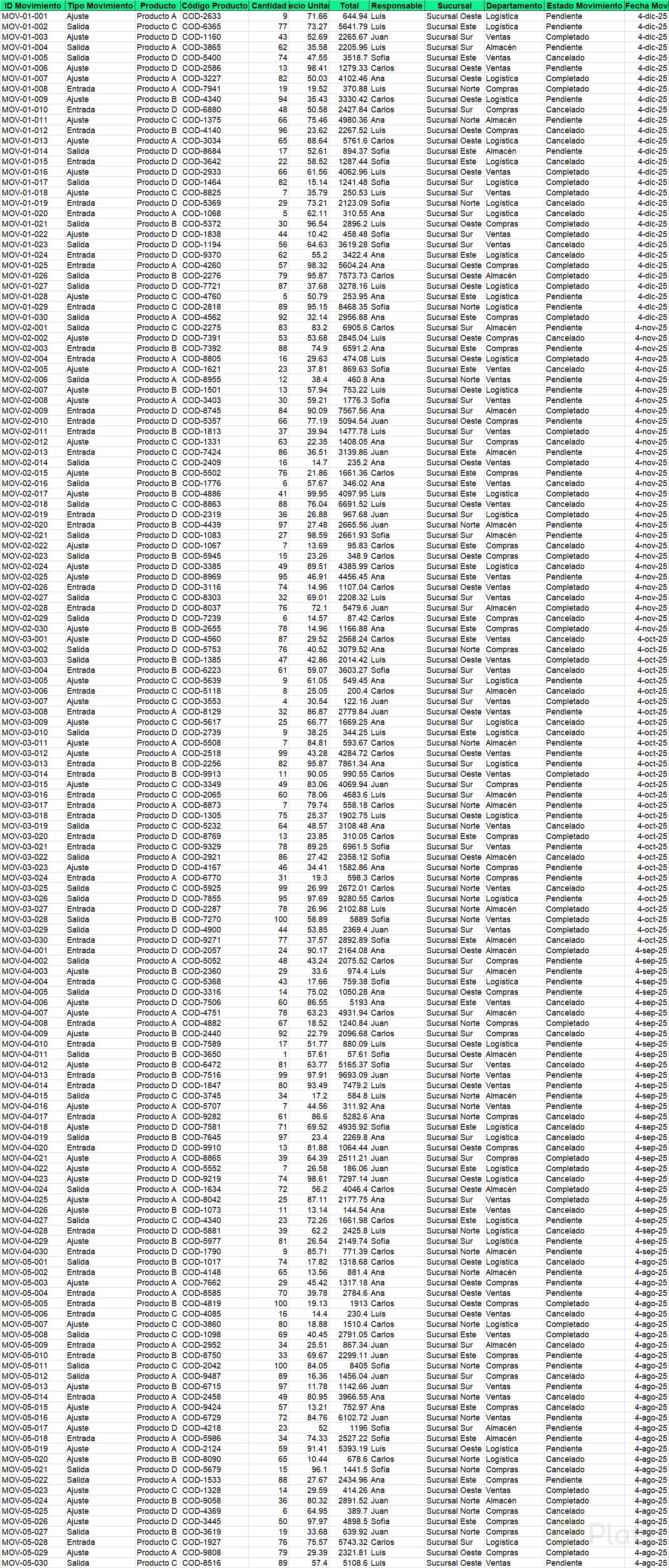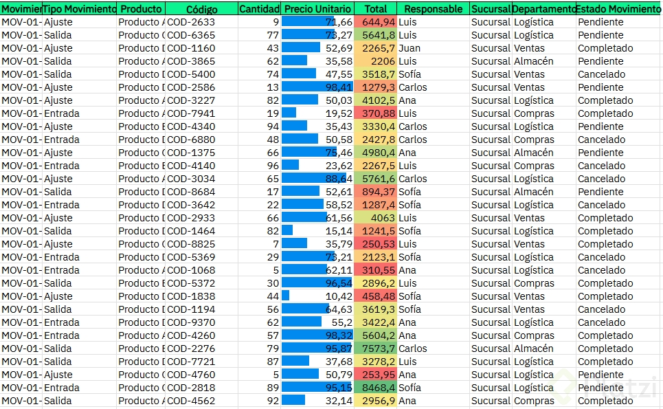 - Si falta un dato clave como "Fecha de movimiento", crea la columna y asigna la fecha correspondiente a cada fila.