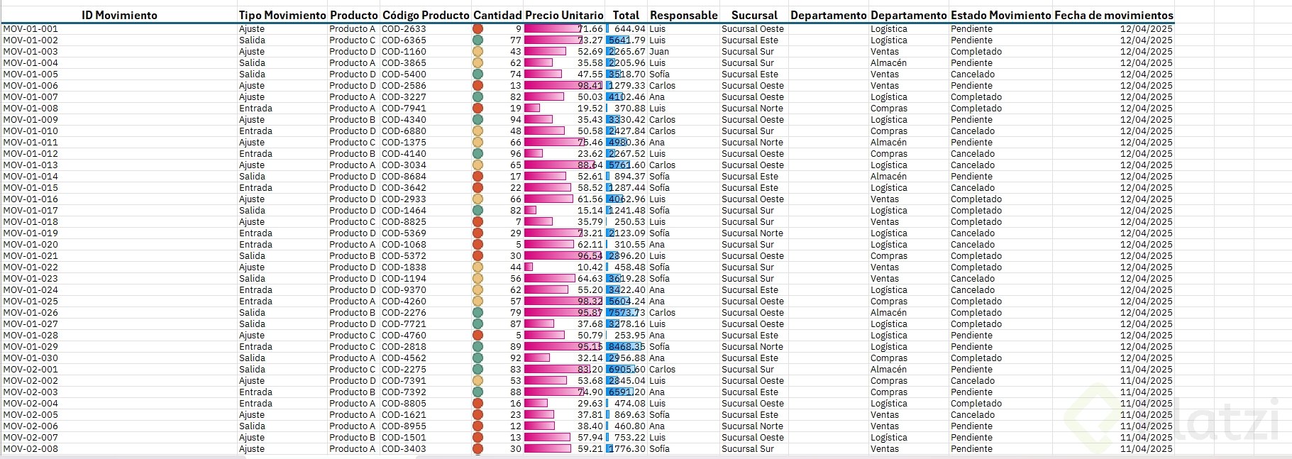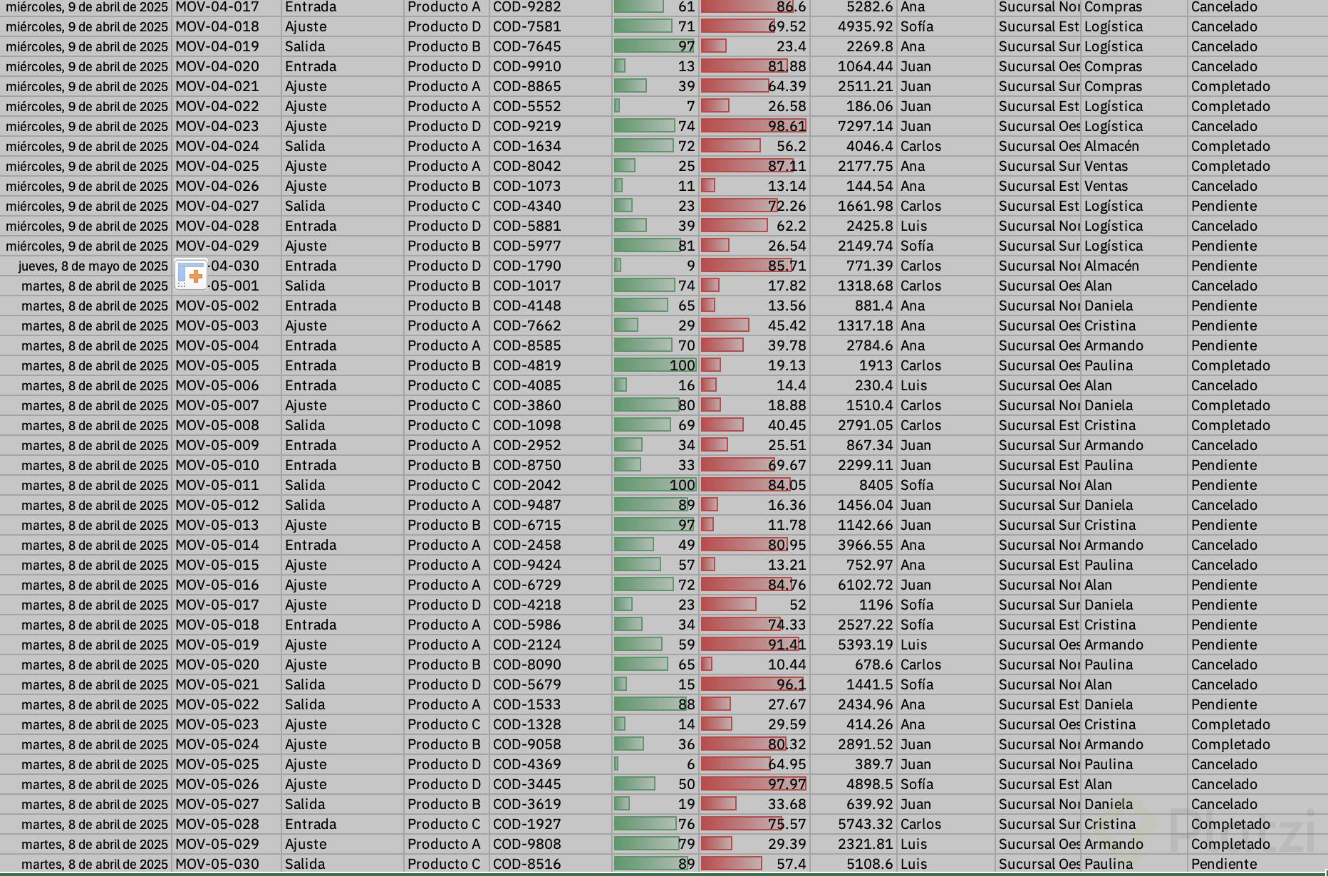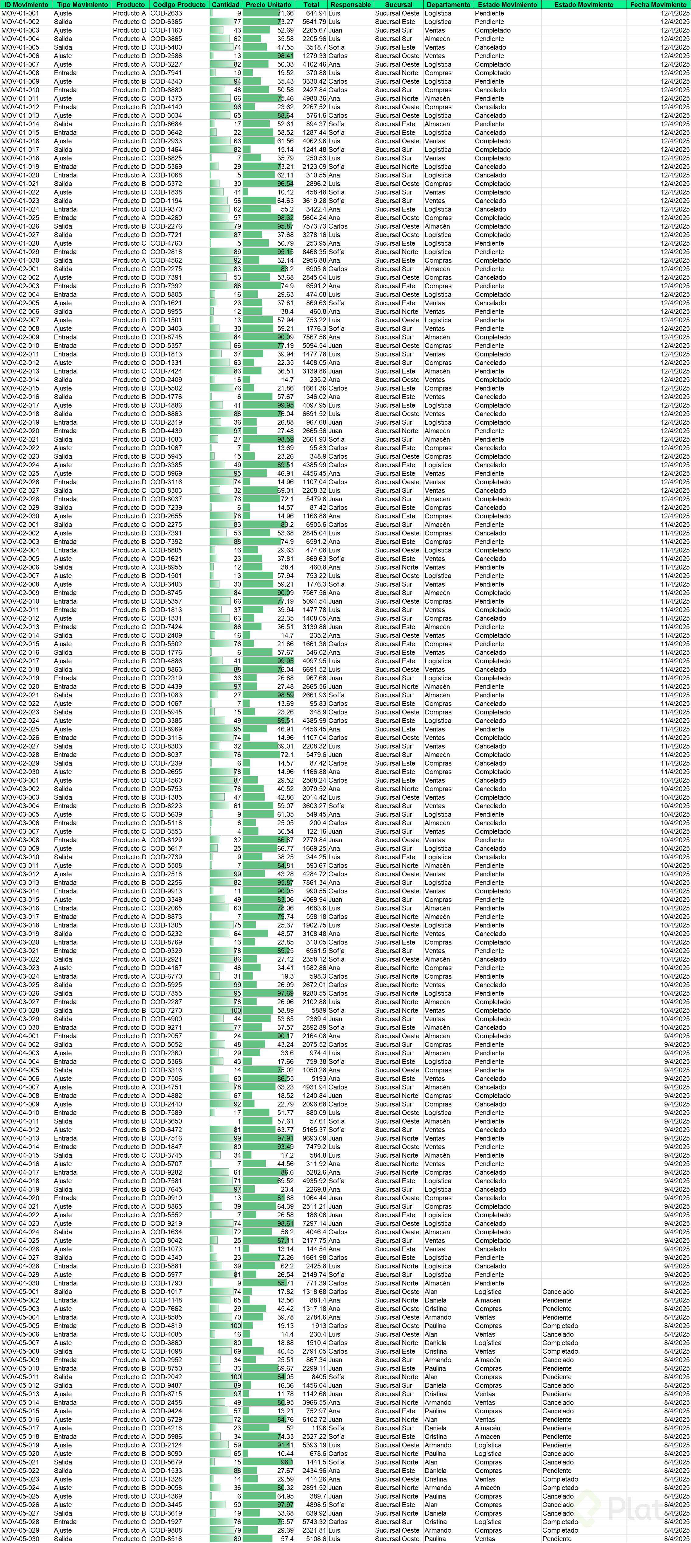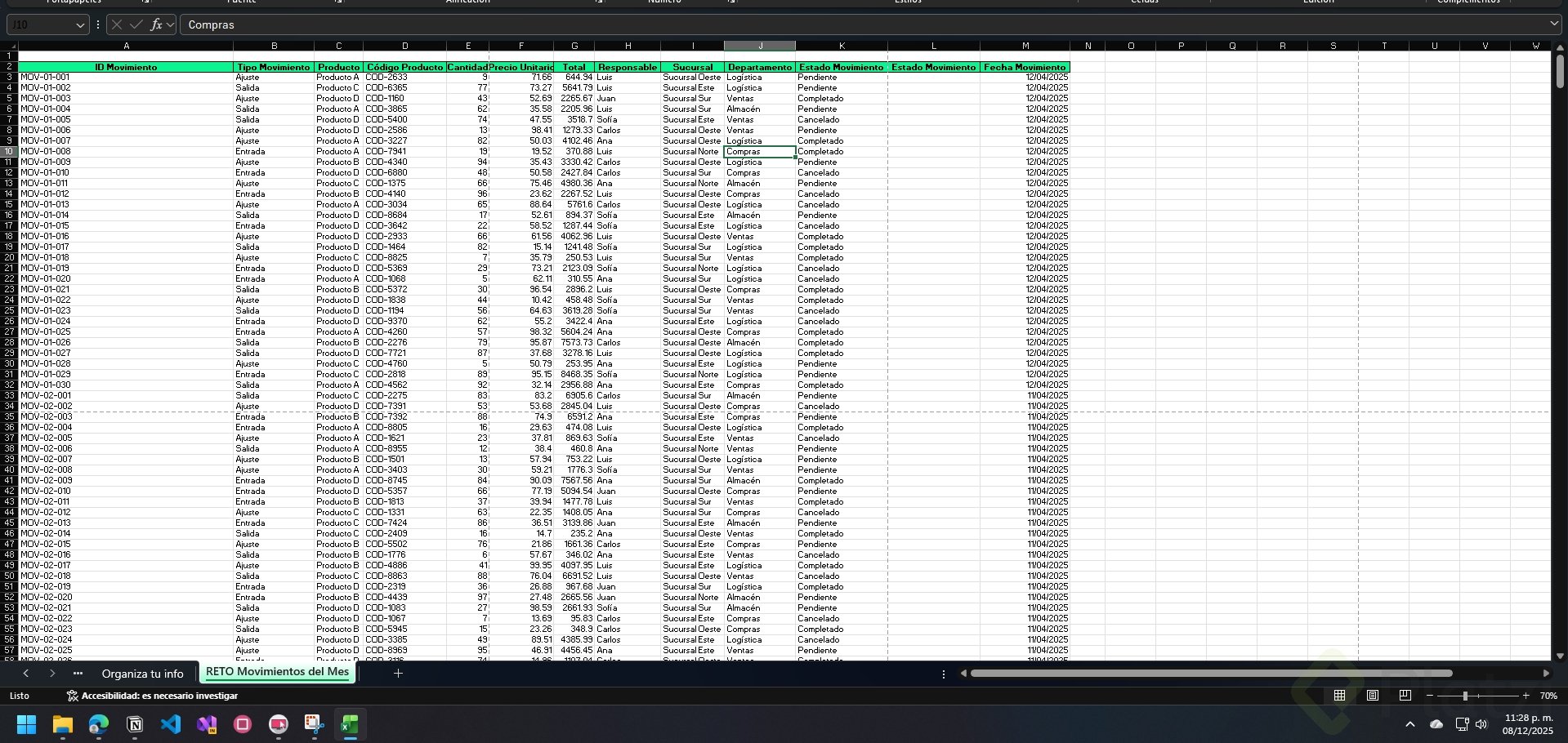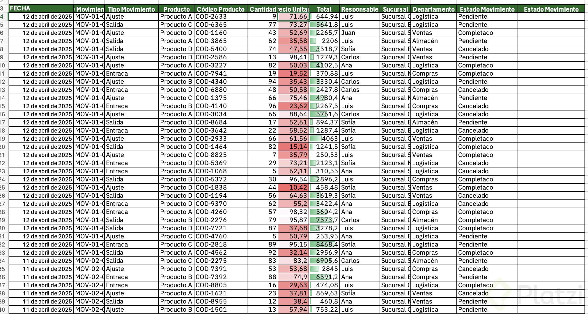 - Si falta un dato clave como "Fecha de movimiento", crea la columna y asigna la fecha correspondiente a cada fila.
