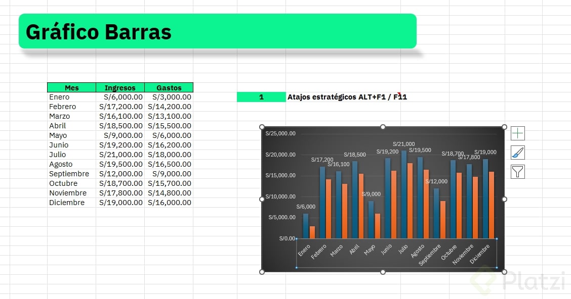 El gráfico de barras es ideal para comparar variables como ingresos y gastos. Generar uno en Excel es sencillo y eficiente usando atajos de teclado y opciones de personalización.