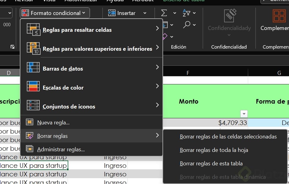 Esto ayuda a visualizar rápidamente registros que cumplan con ciertas características dentro de tus datos.