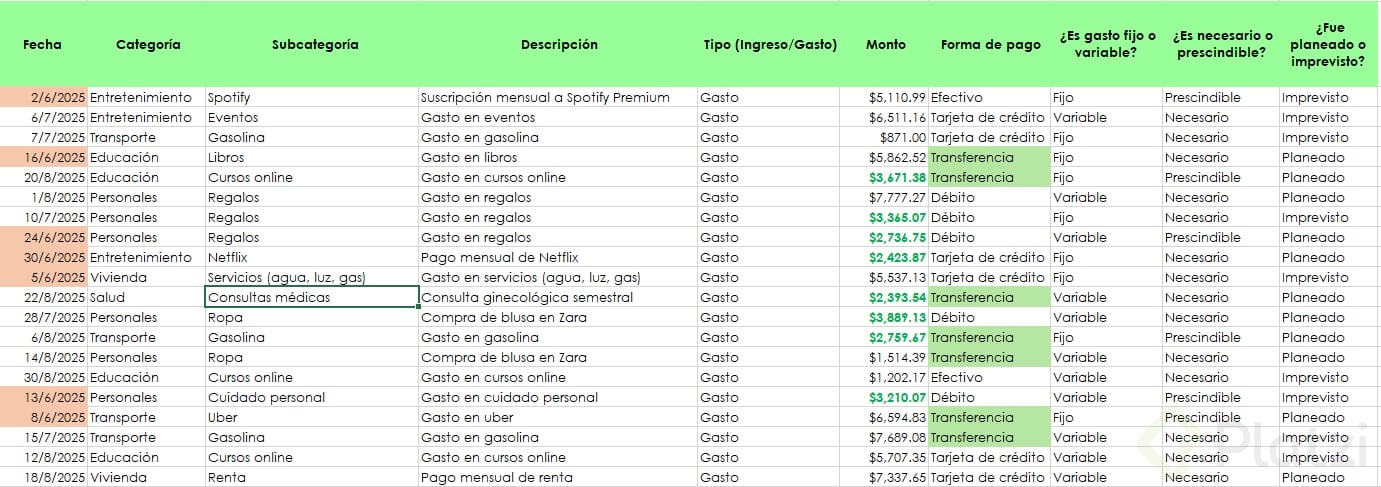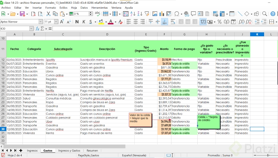 ¿Cómo diferenciar celdas según tipo de gasto o características específicas?