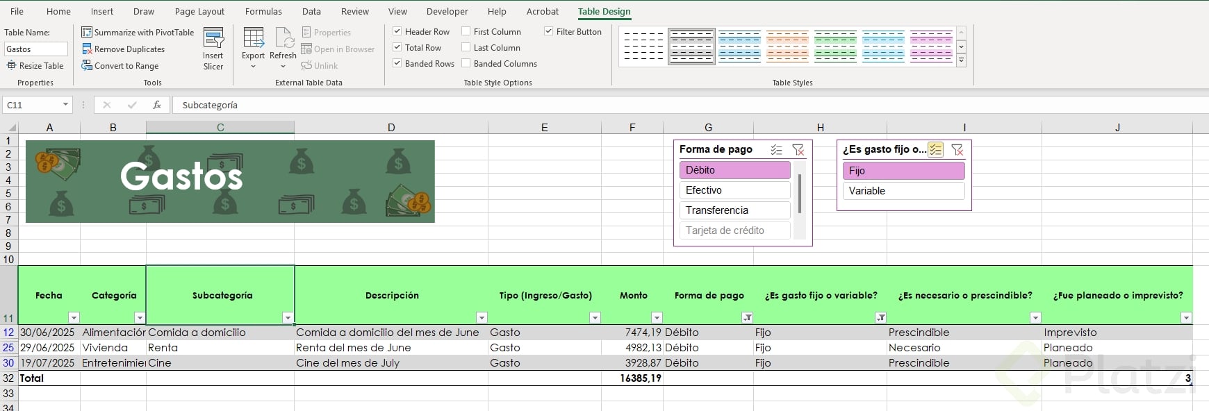 Aunque muchos piensan que tener filtros activados significa que están manejando una tabla, esto no es correcto. La clave está en la aparición de la pestaña diseño de tabla. Si esa pestaña está disponible, tus datos están en formato de tabla y puedes acceder a múltiples funciones adicionales.