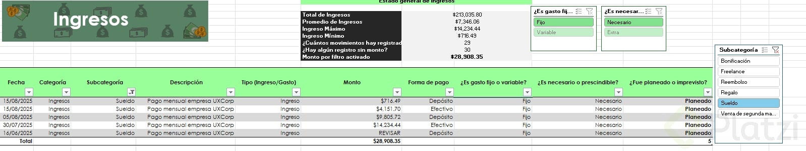- Puedes cambiar el nombre de la tabla y así referirte fácilmente al conjunto de datos (por ejemplo: "ingresos").