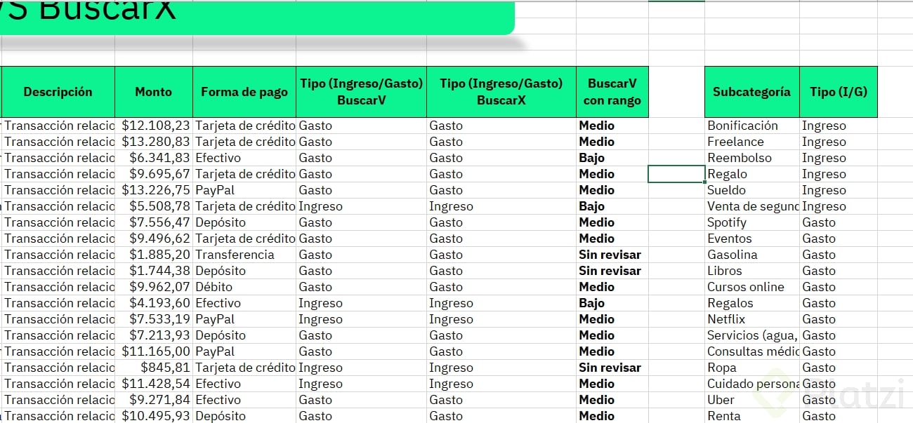 - Al ejecutar la fórmula, Excel clasifica automáticamente cada transacción según tus criterios.