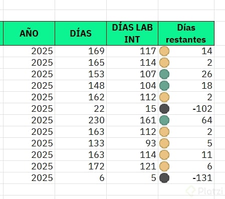 - Fija las celdas que representan la fecha de hoy o los días de descanso para mantener cálculos correctos al copiar la fórmula.