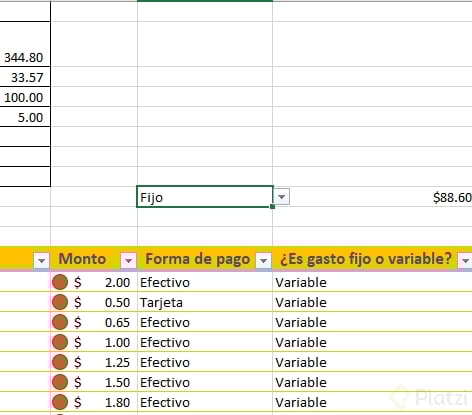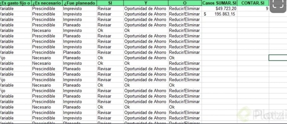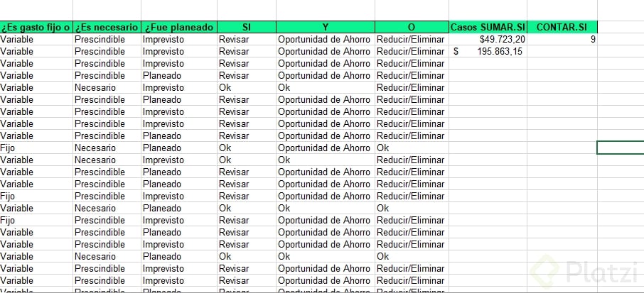 - Con Y, por ejemplo, es posible detectar cuando un gasto es tanto fijo como necesario; de cumplirse ambas, se considera “Ok”.