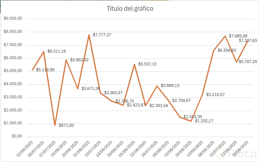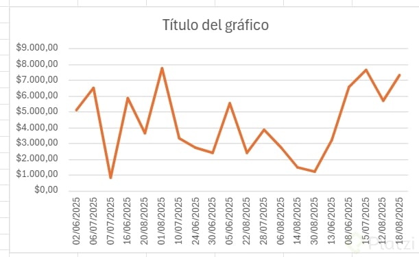 El gráfico de líneas es fundamental para visualizar datos en series de tiempo, como ingresos mensuales o diarios. Selecciona tu columna de fechas y, usando Control Shift y la flecha hacia abajo, marcas toda la serie. Si tus datos (como montos) no están juntos, usa Control y vuelve a seleccionar la siguiente columna antes de usar de nuevo Control Shift y flecha. Así puedes elegir varias áreas no adyacentes.