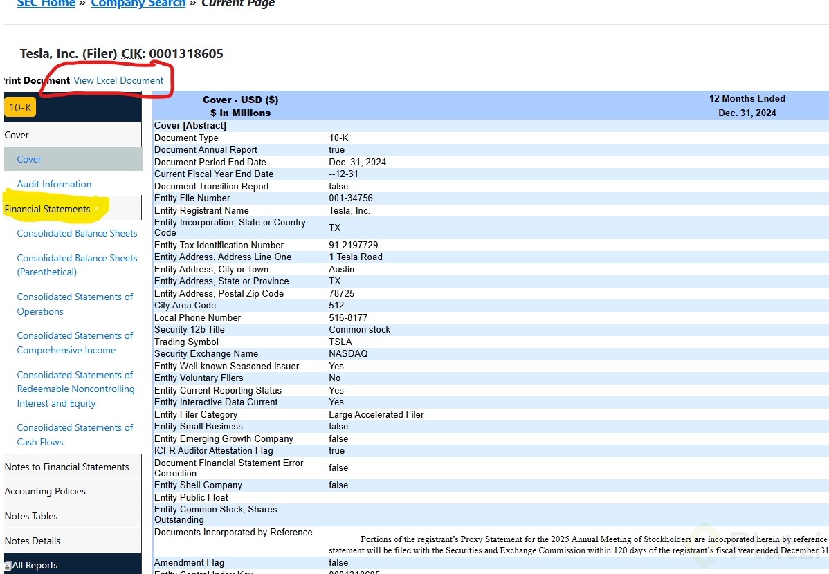 Una de las primeras etapas al valorar una empresa es obtener su información financiera. Existen dos métodos principales para descargar los estados de resultados de Tesla: