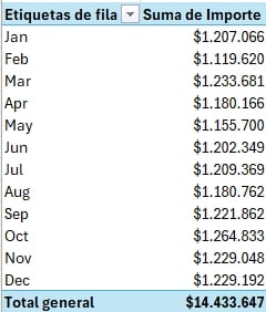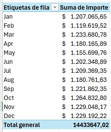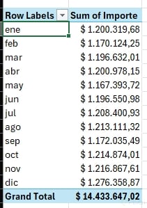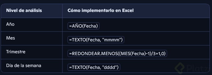 Beneficio: obtienes una visión temporal clara, útil para tendencias, estacionalidad y cortes ejecutivos sin fórmulas adicionales.