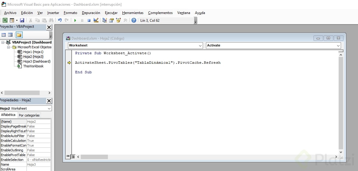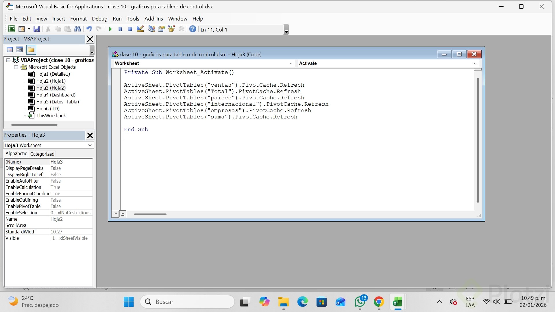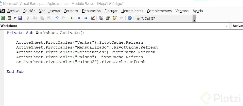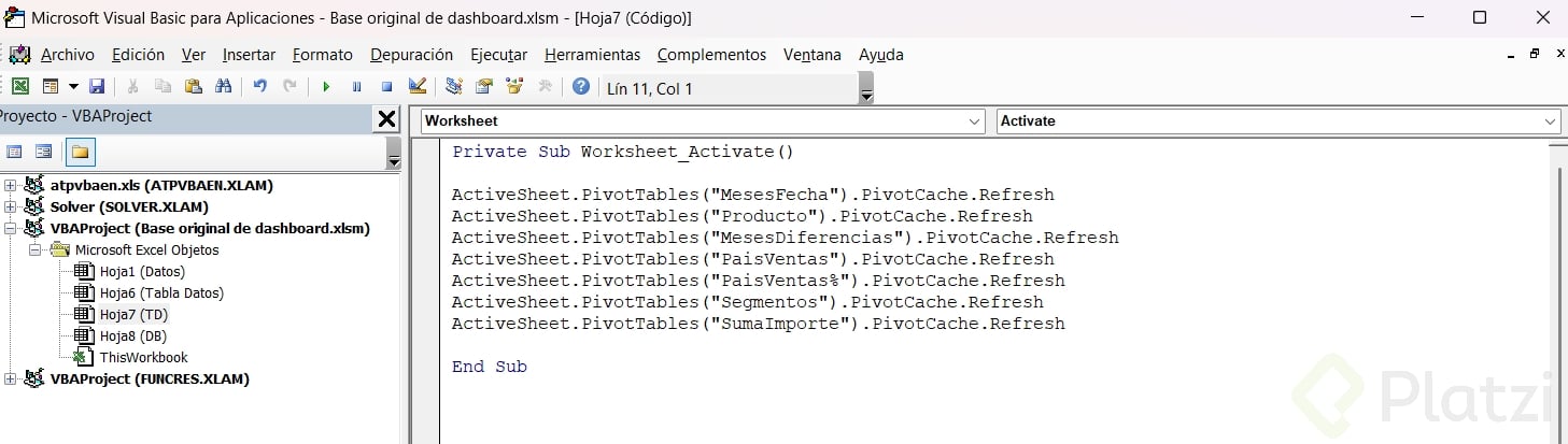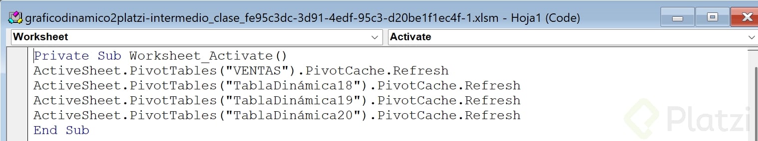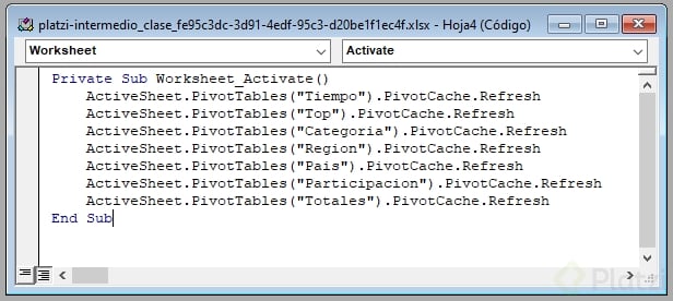 - Cierra el editor y prueba: al activar la hoja, se actualiza la tabla dinámica automáticamente.