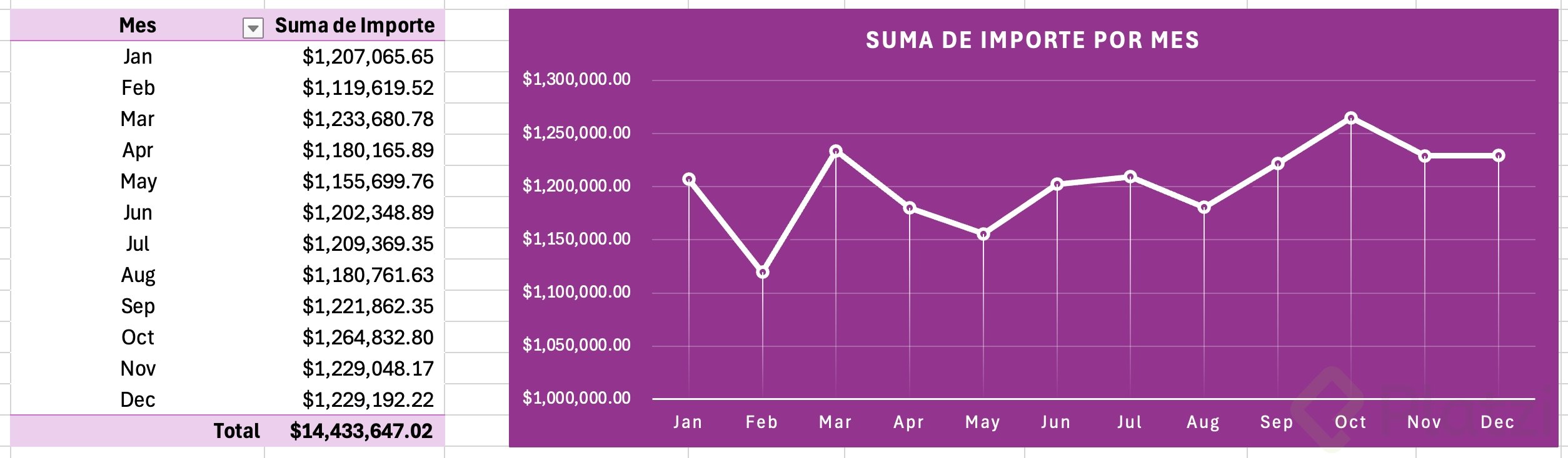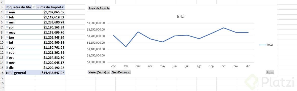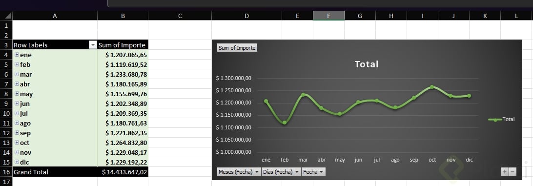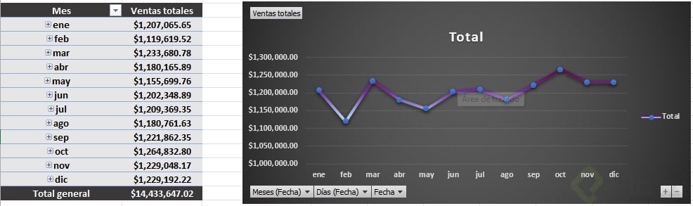 - Agrega un gráfico dinámico de líneas para tus ventas por mes.