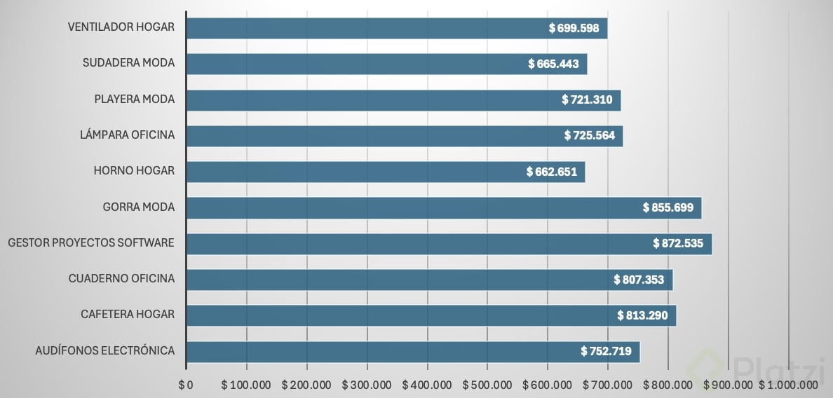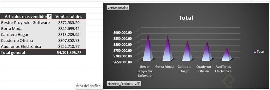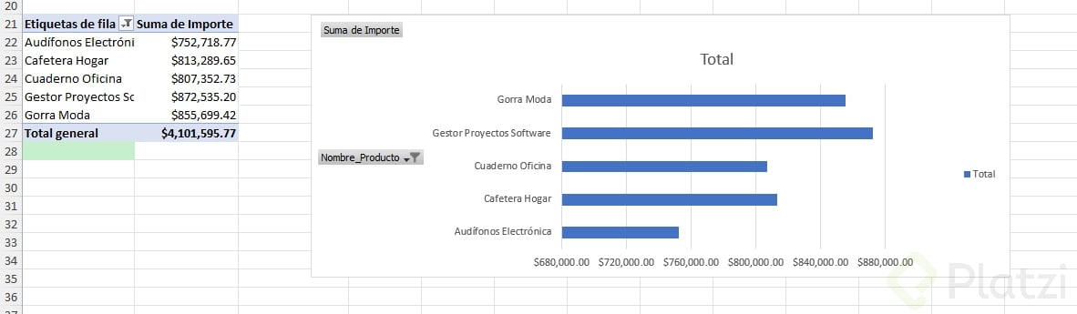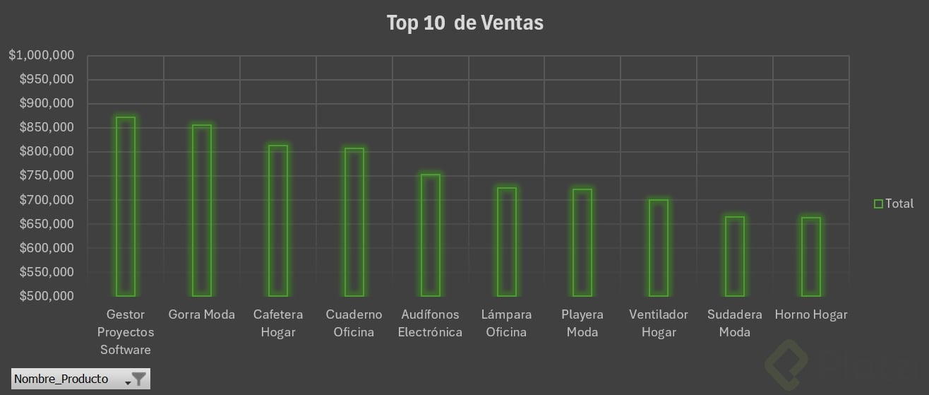 - Crea un gráfico dinámico de barras para tu top 10 de productos.