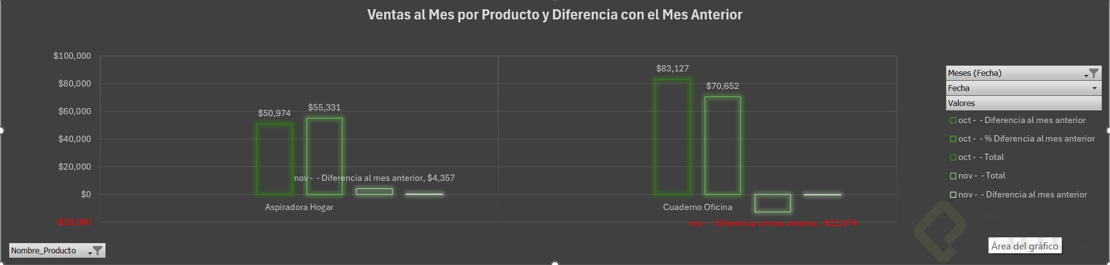 ¿Cómo obtener la diferencia y el porcentaje vs mes anterior?