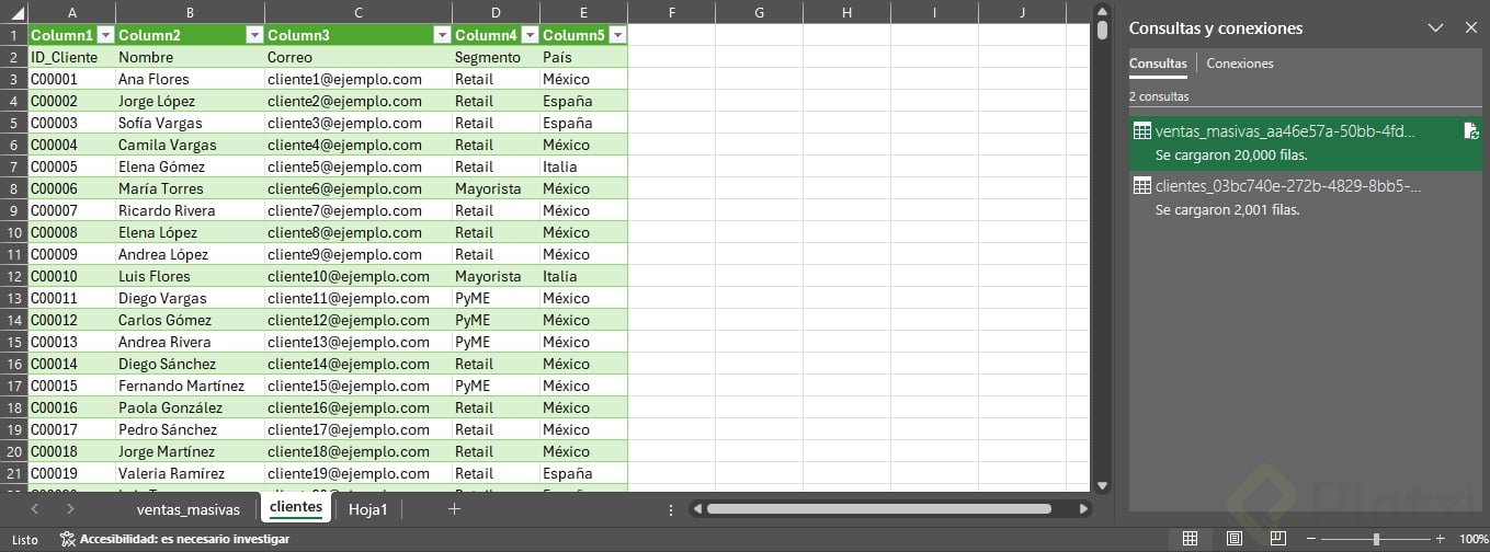 Importar un CSV desde la pestaña Datos permite crear una conexión entre Excel y el archivo original. Así, cualquier cambio en el origen se refleja al actualizar en Excel.