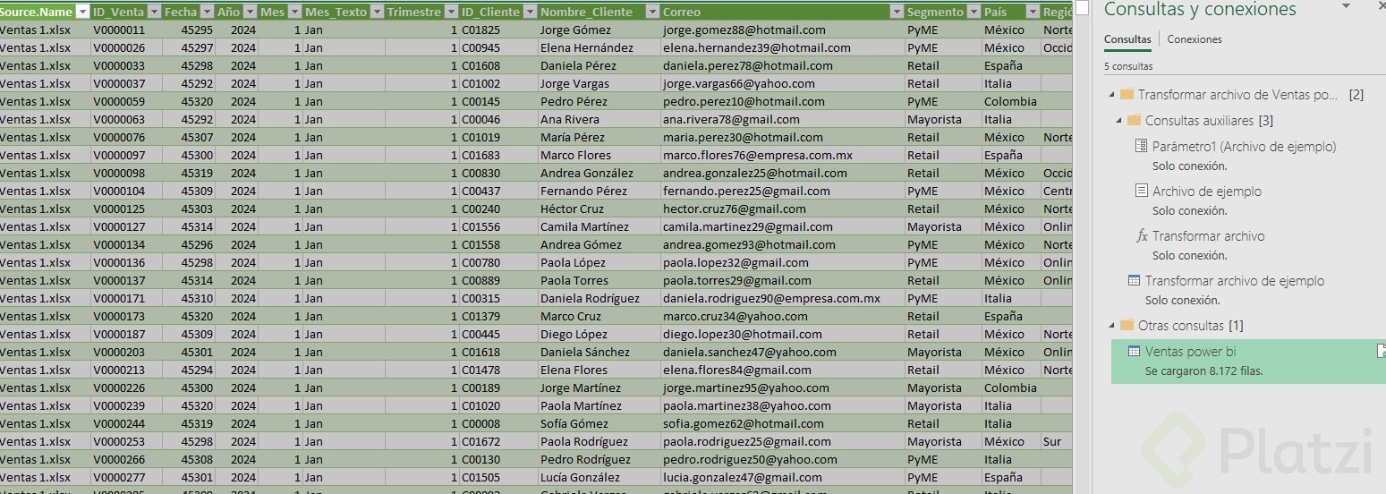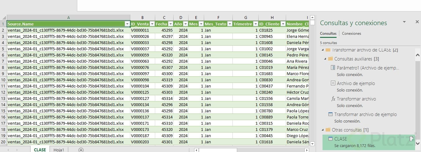 La clave es la conexión desde una carpeta. Cuando agregues el mes seis, siete u ocho en esa misma ruta, solo presiona actualizar en Power Query y los datos nuevos aparecerán en tu Excel. Este enfoque asegura que cada cambio en la fuente se refleje en tu reporte, sin importar la frecuencia.