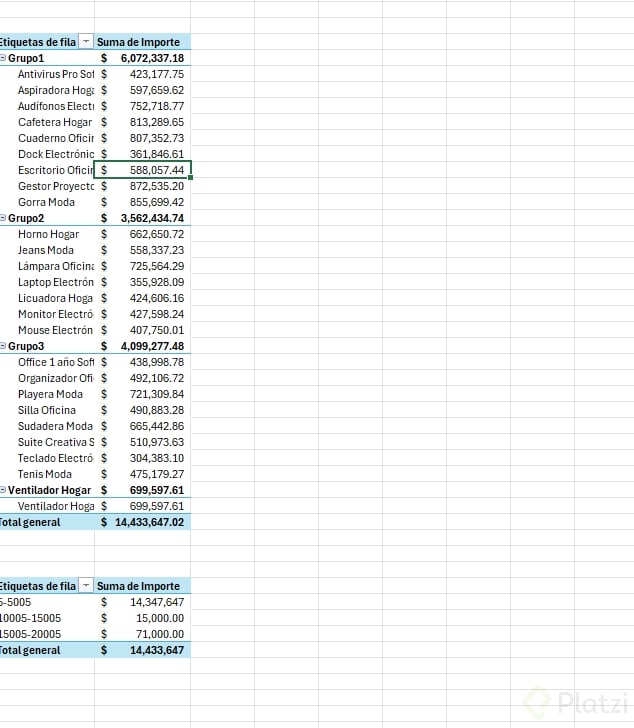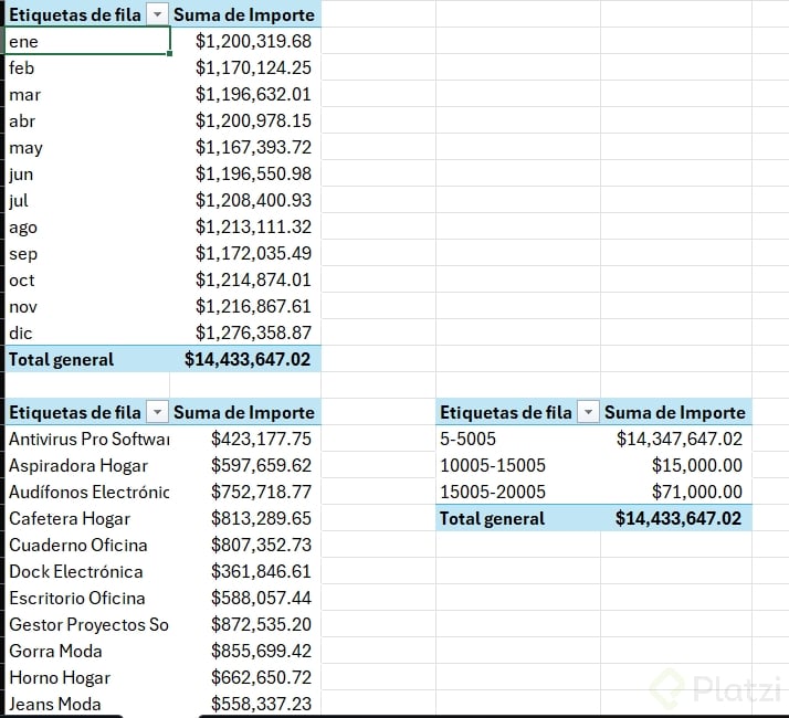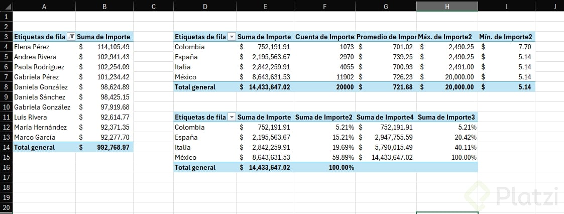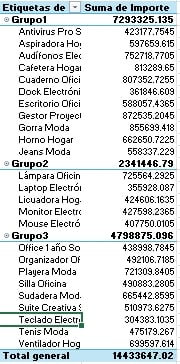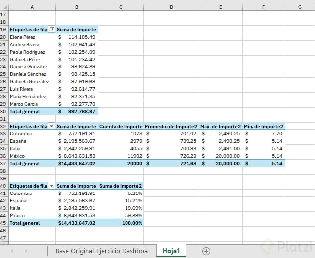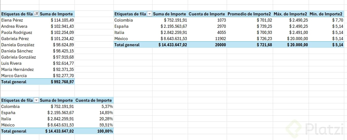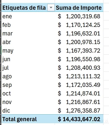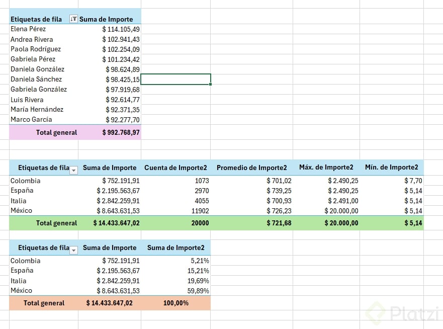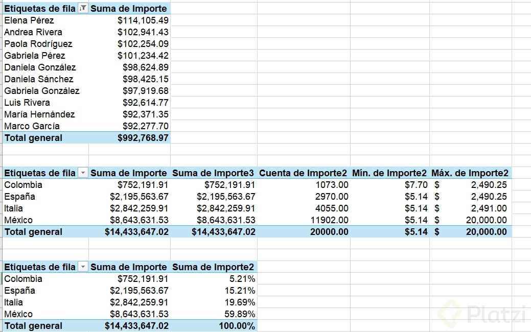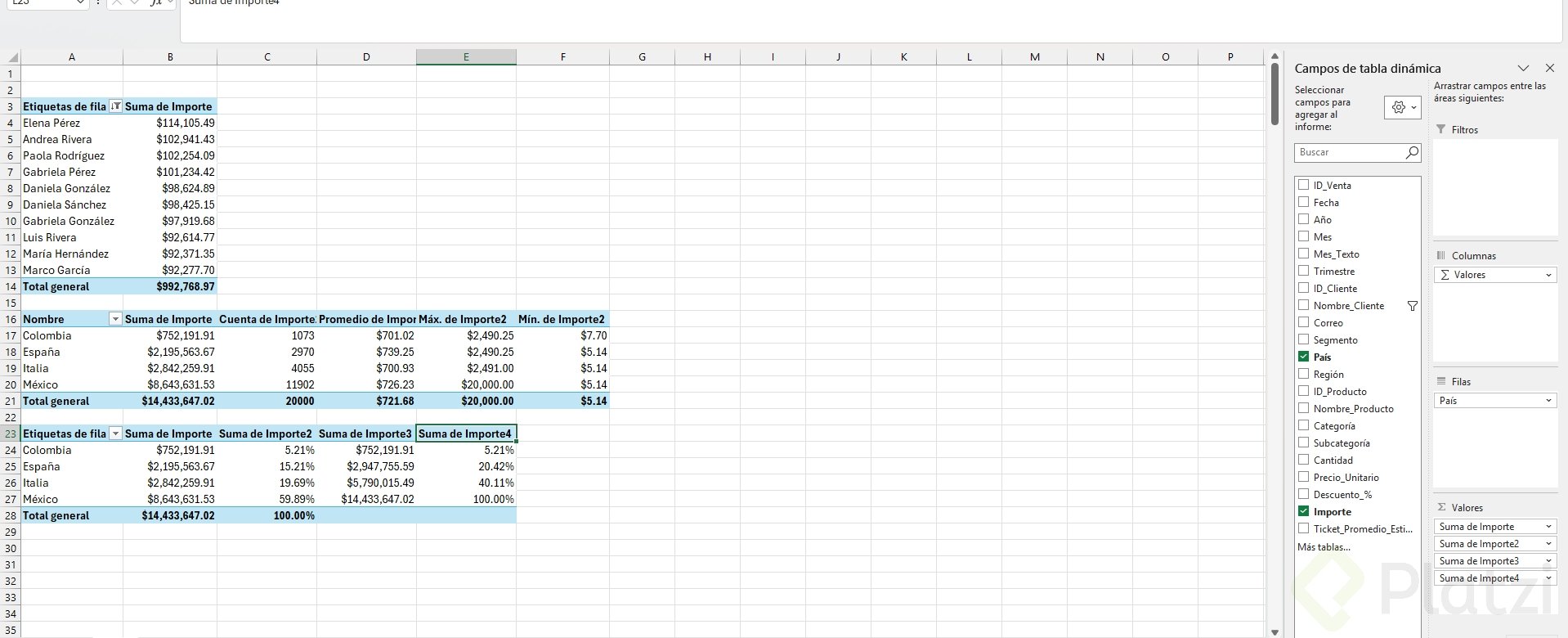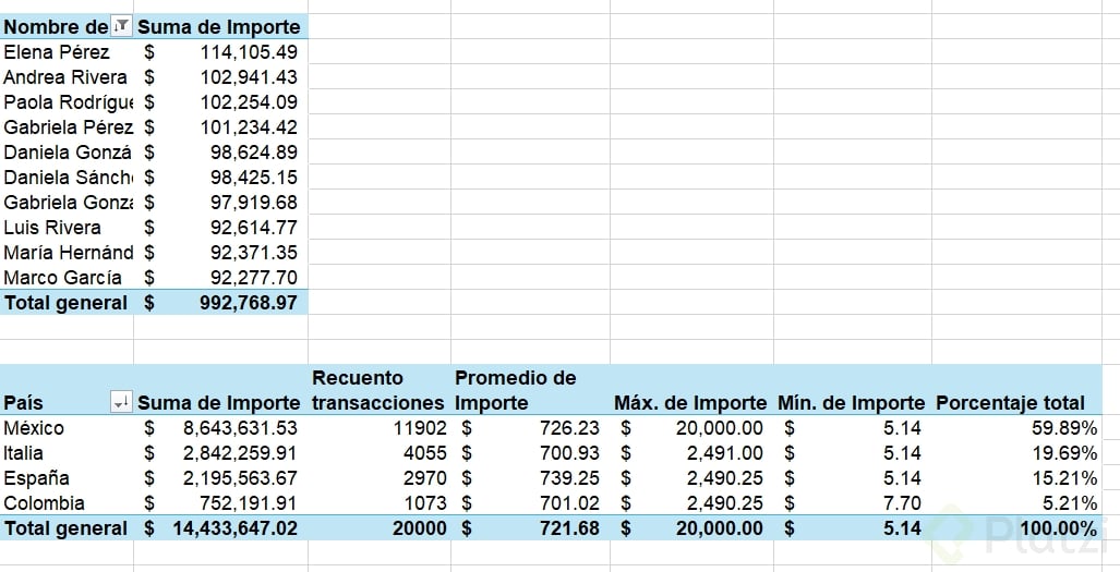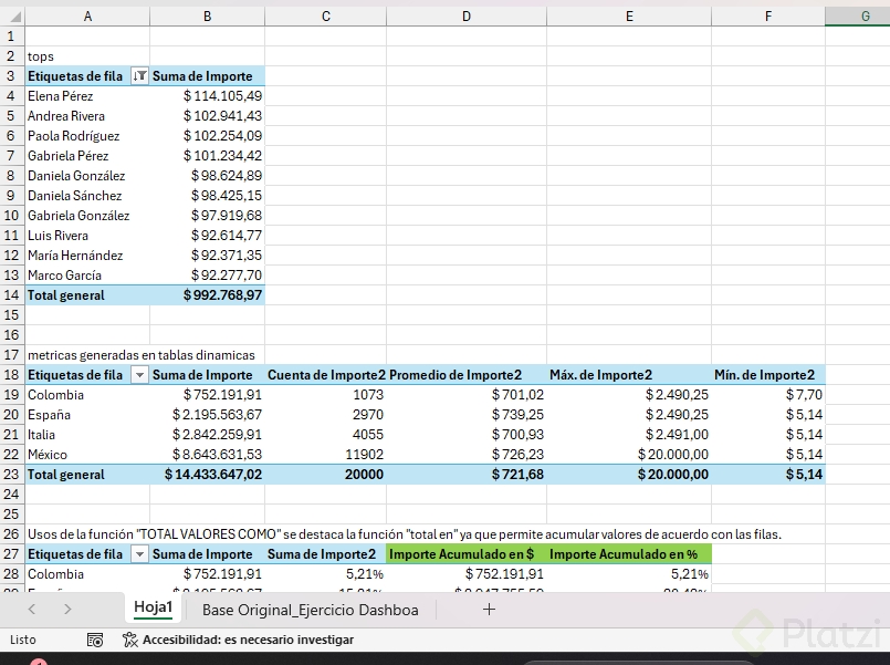 - Usa ordenación descendente por Suma de Importe para lectura inmediata.