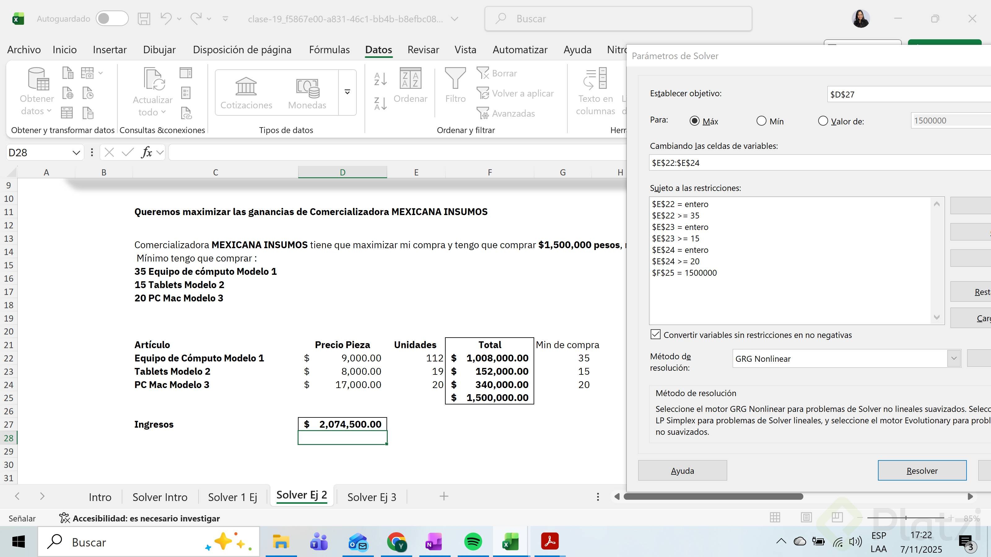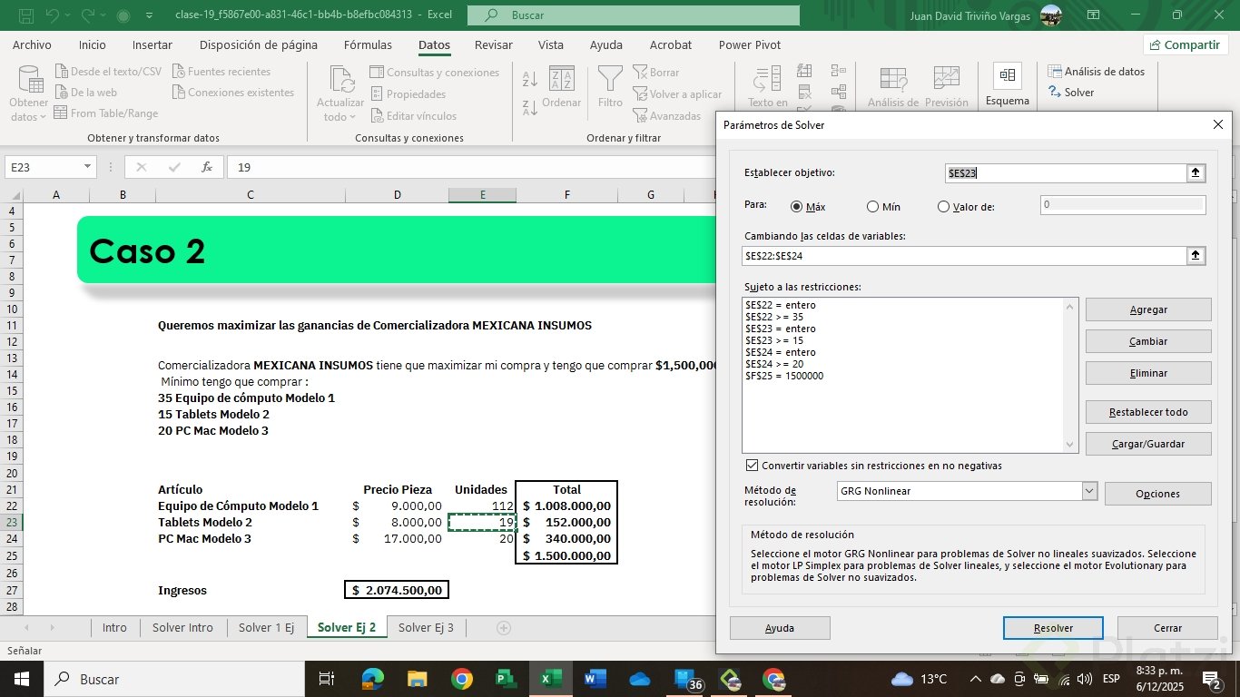 ¿Tienes dudas o ya resolviste el ejercicio? comparte tu captura y comenta cómo configuraste tus restricciones y el objetivo en Solver.