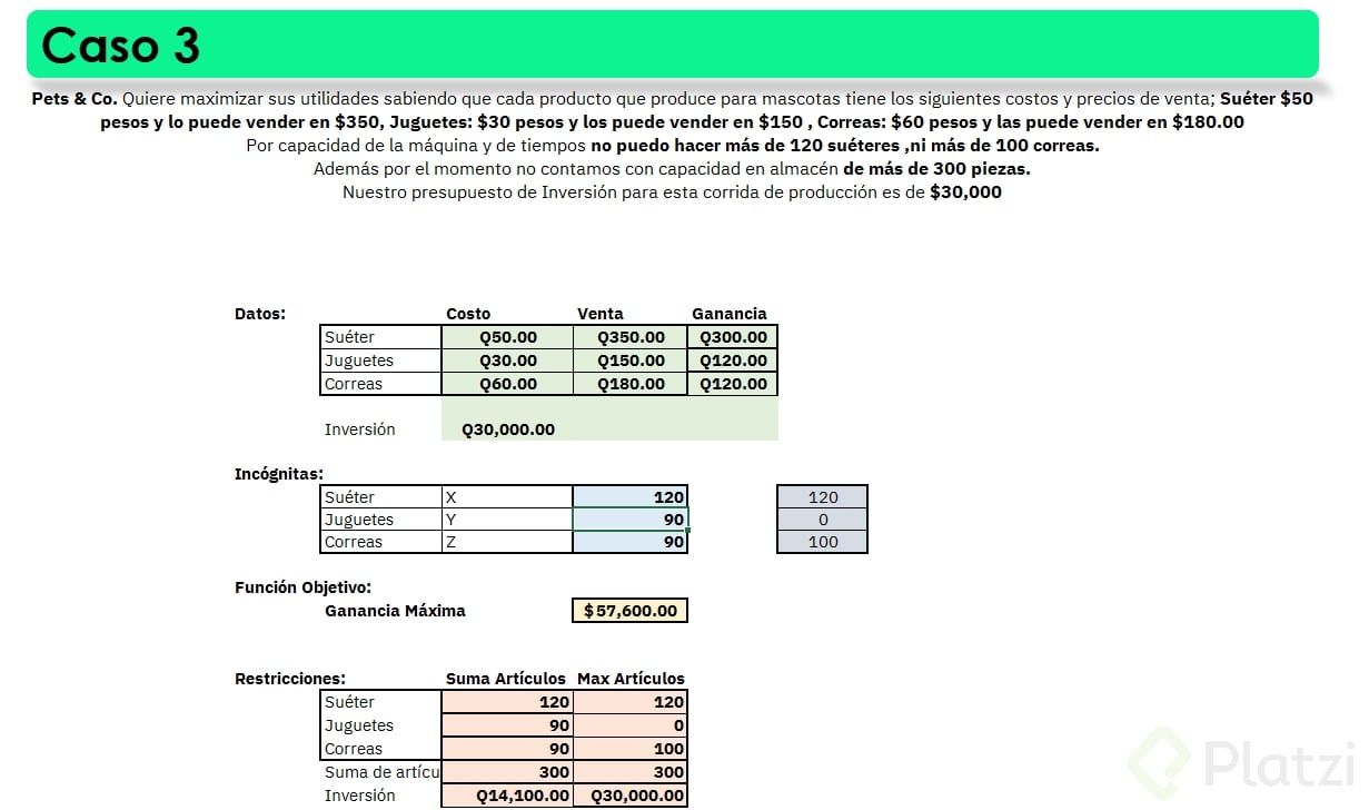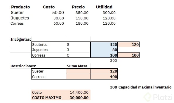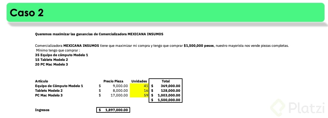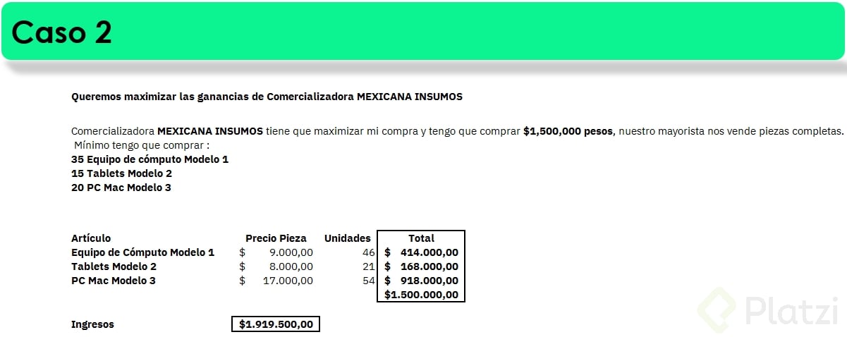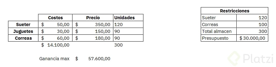 - Problemas típicos: capacidad, inventario, presupuesto o crédito.