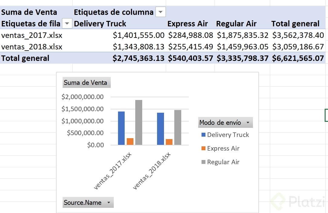 Cada visual del tablero puede venir de una tabla dinámica conectada a una tabla que, a su vez, se alimenta de Power Query. En lugar de depender de un solo archivo estático, conectas directamente a la carpeta con tus fuentes. Luego, solo das actualizar en las tablas dinámicas y el cambio se refleja en el dashboard.
