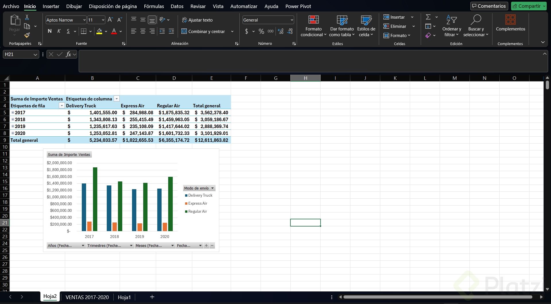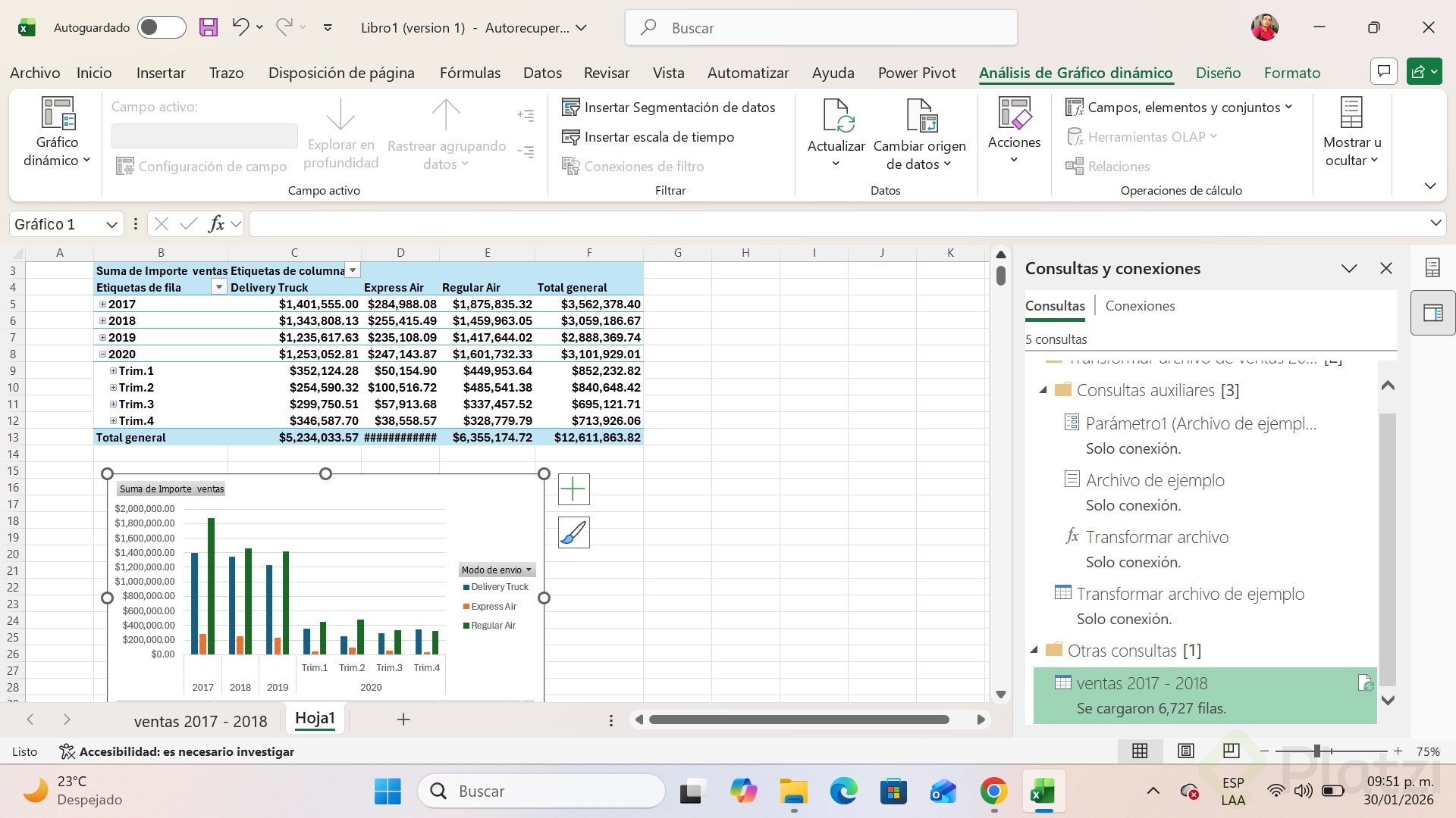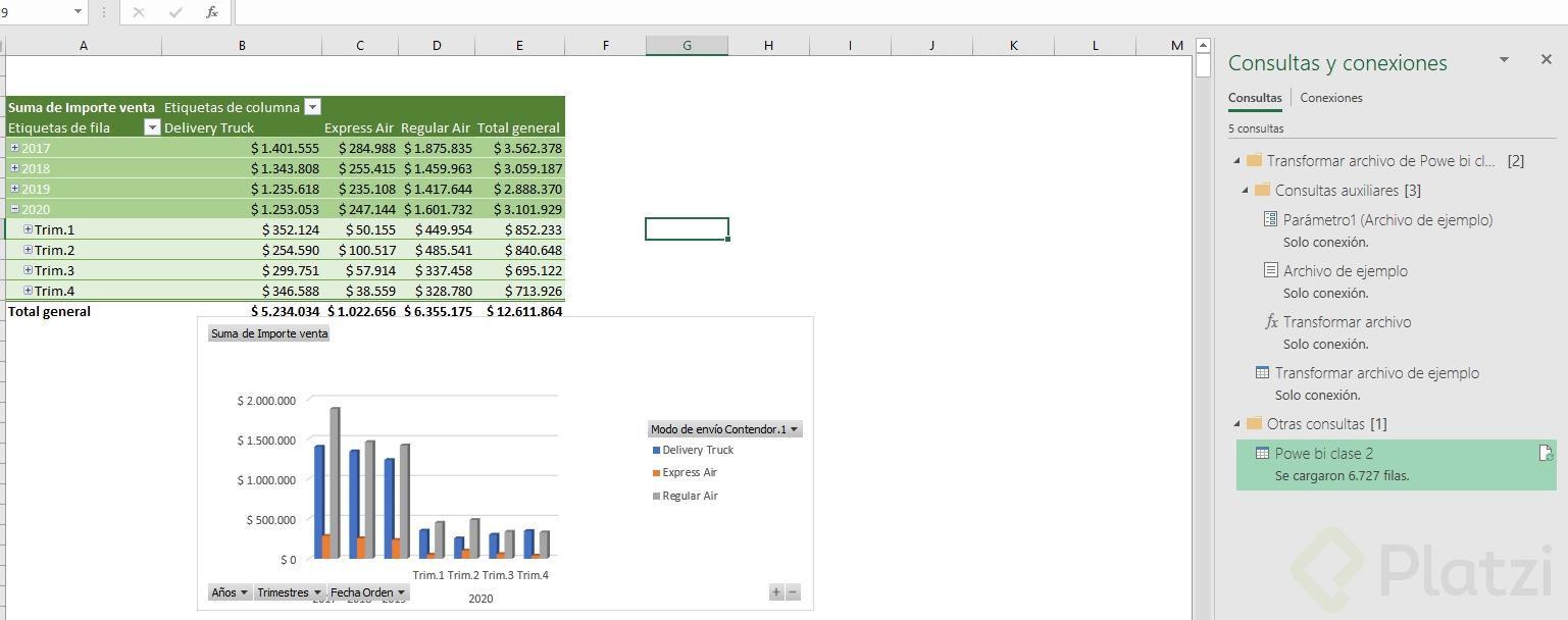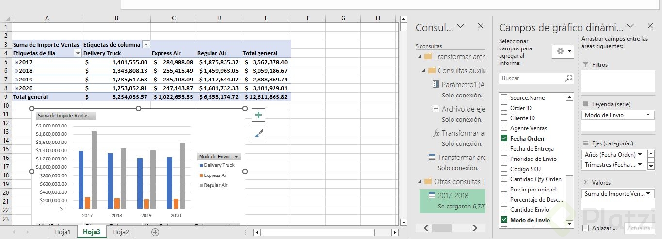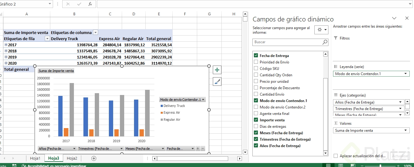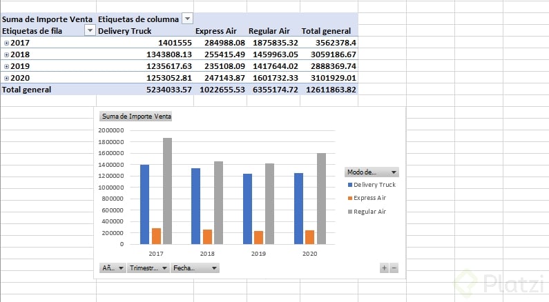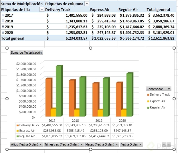 - Actualizar la tabla dinámica y el gráfico dinámico para ver los nuevos periodos.