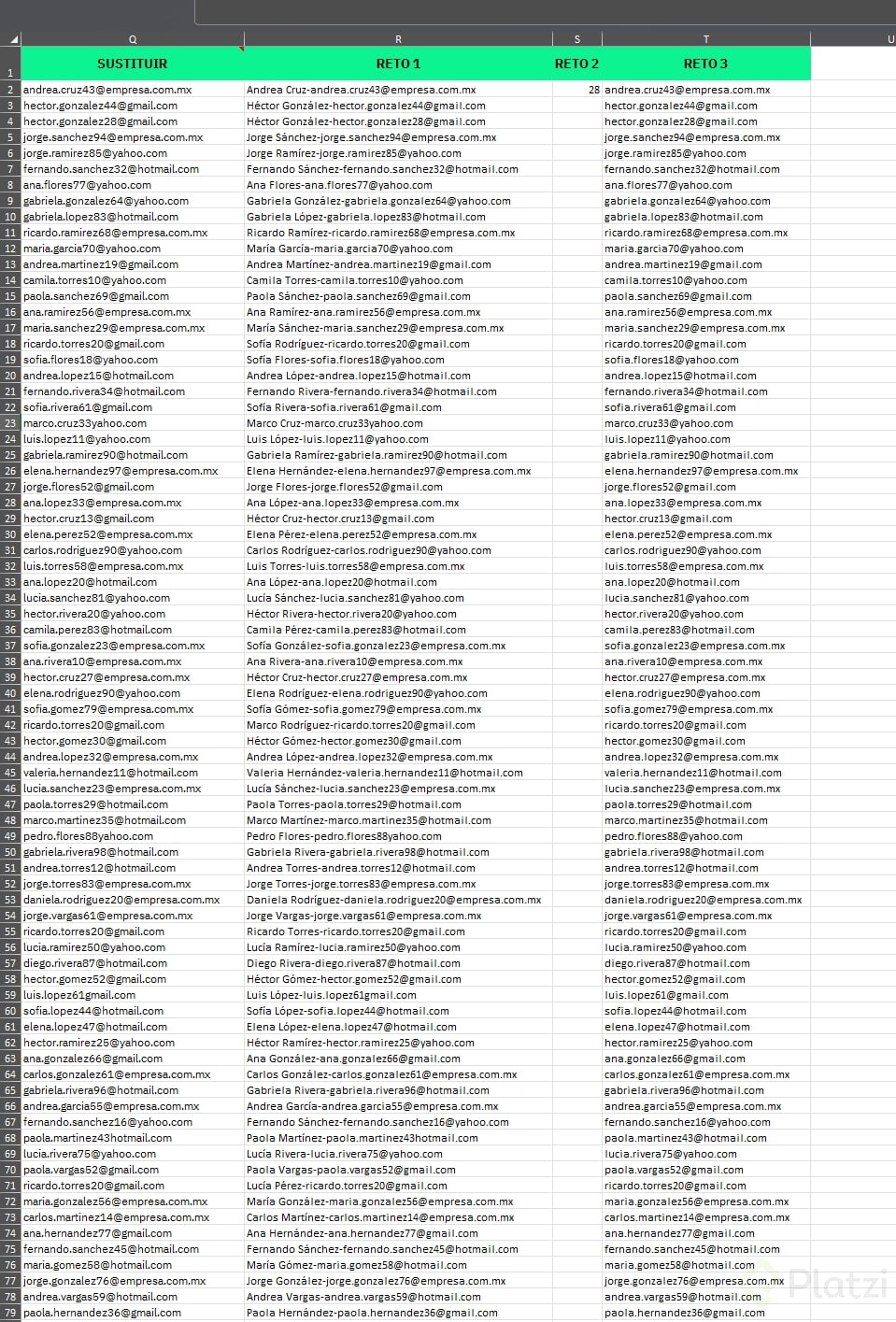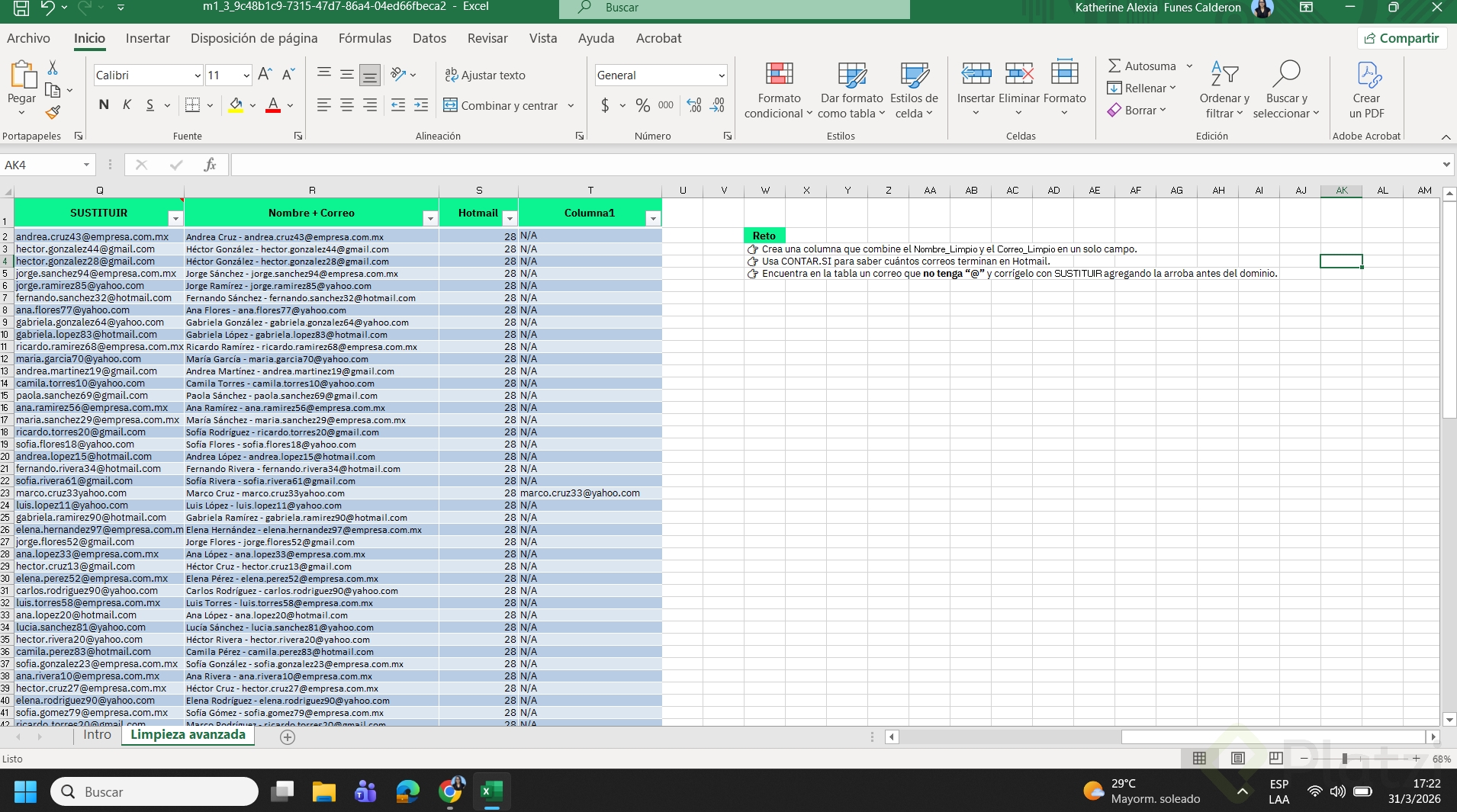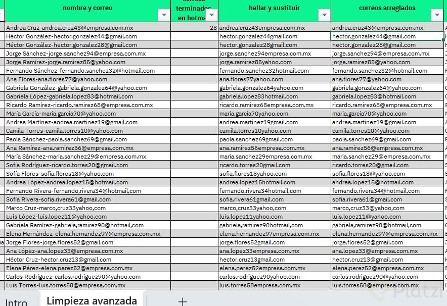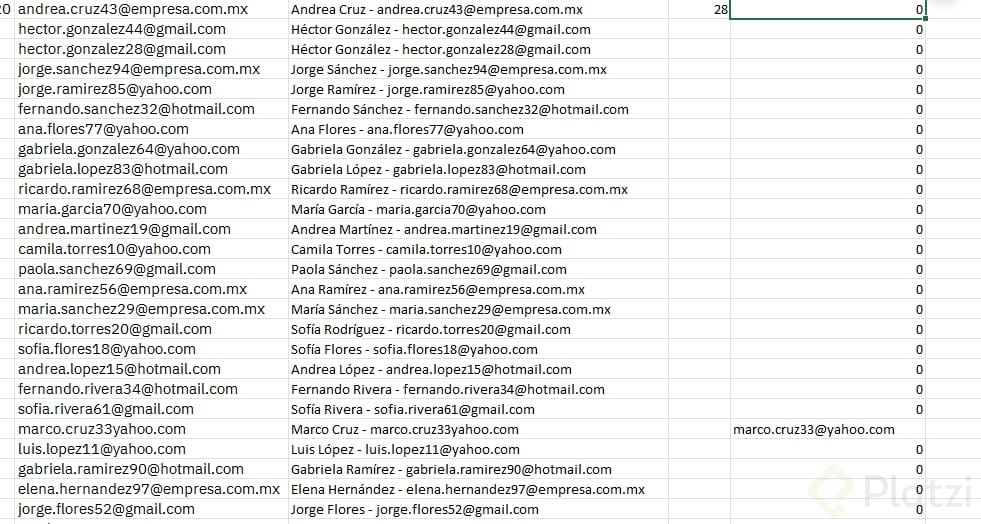 - Crea una columna que combine nombre y correo limpio en un solo campo.