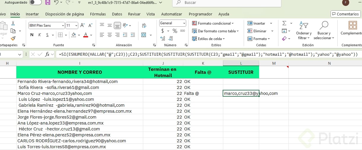 ¿Cómo validar correos con hallar, esnumero y si?