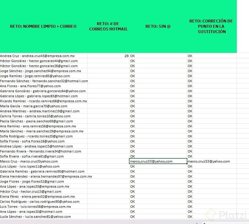 - Encuentra un correo sin arroba y corrígelo con