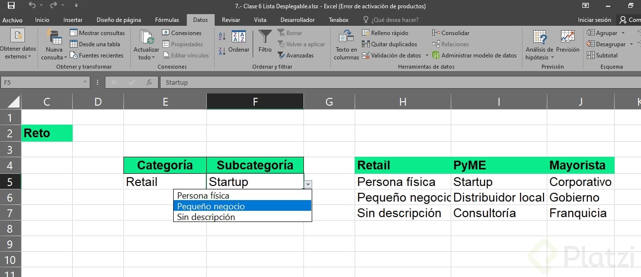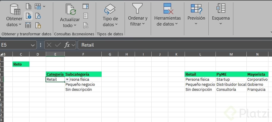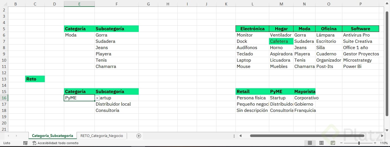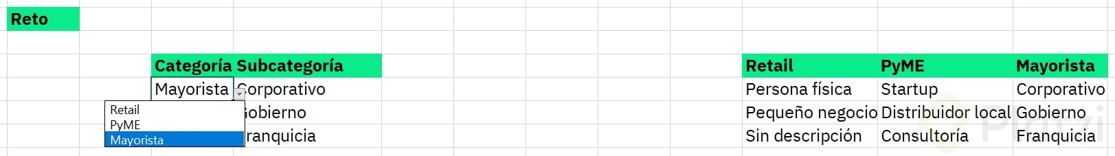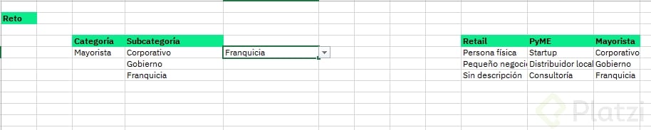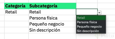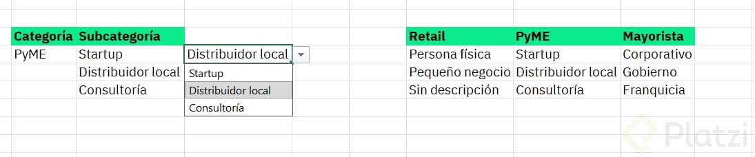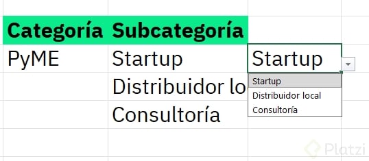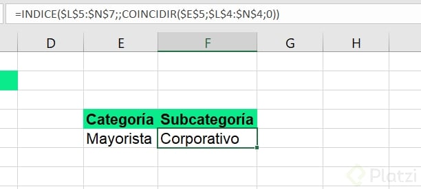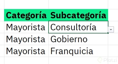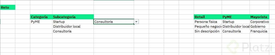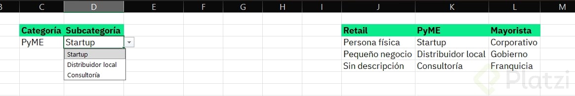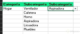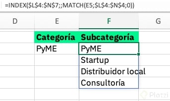 - Copia la fórmula dinámica que devuelve la columna de subcategorías.