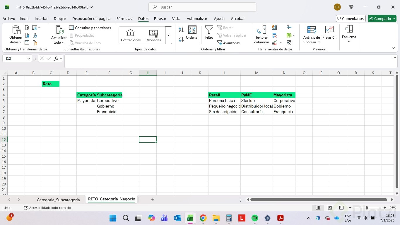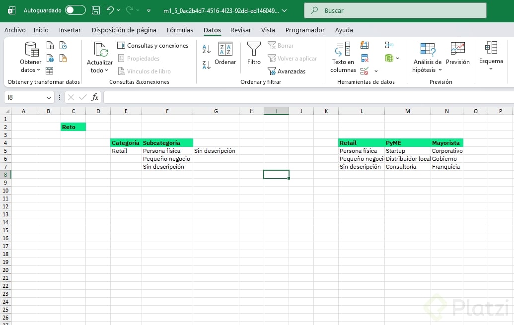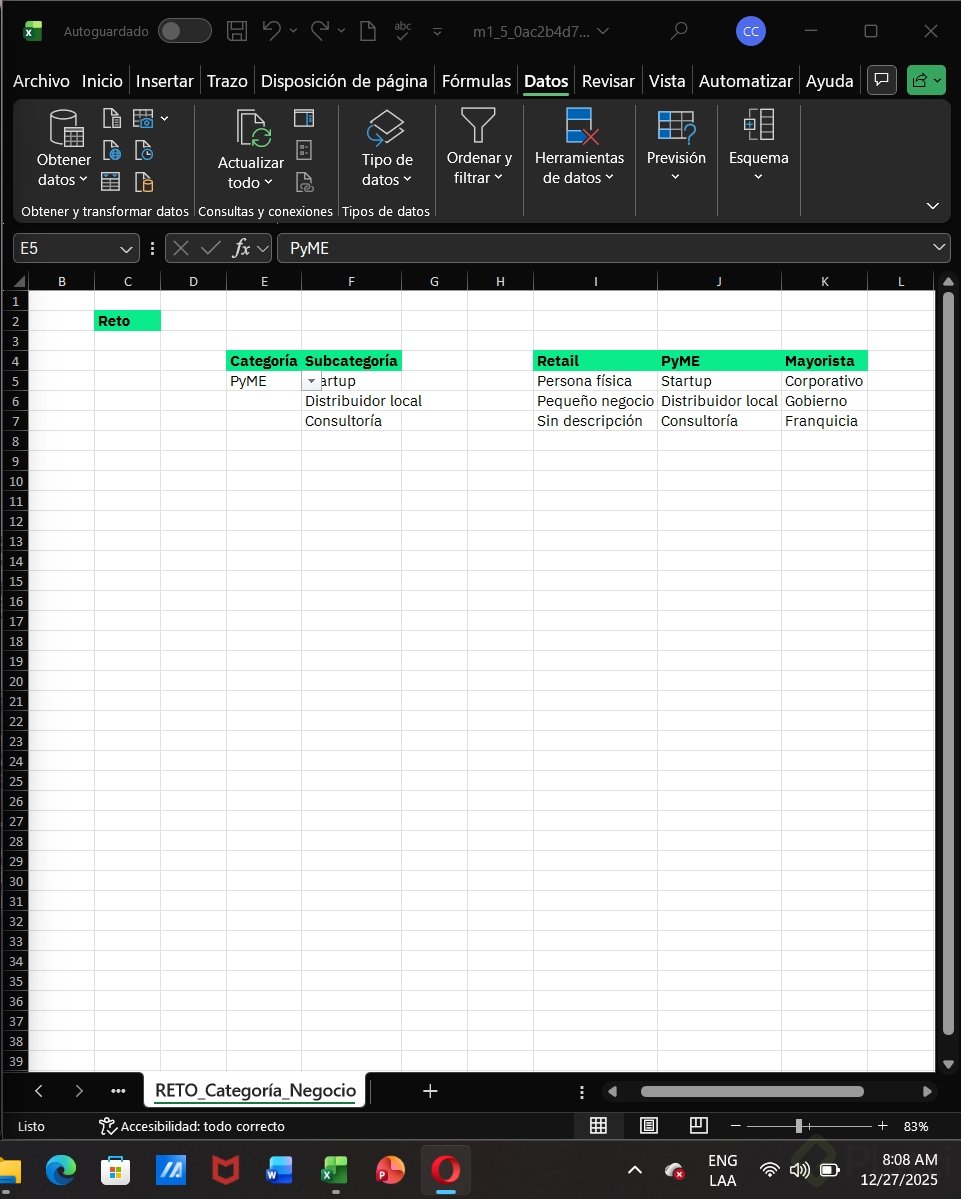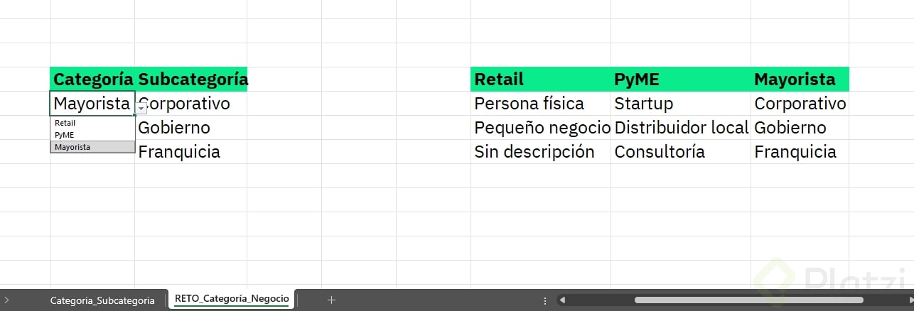 - Matriz: tu tabla completa de categorías y subcategorías.