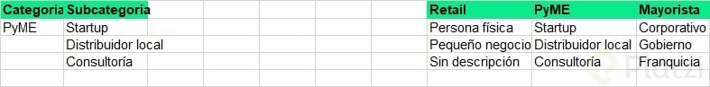 - Crea la primera lista basada en categoría: retail, PYME, mayorista.