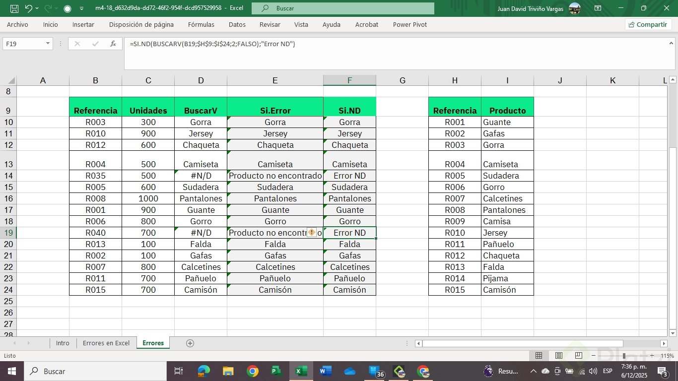 Manejo de errores en Excel con SI.ERROR y SI.ND