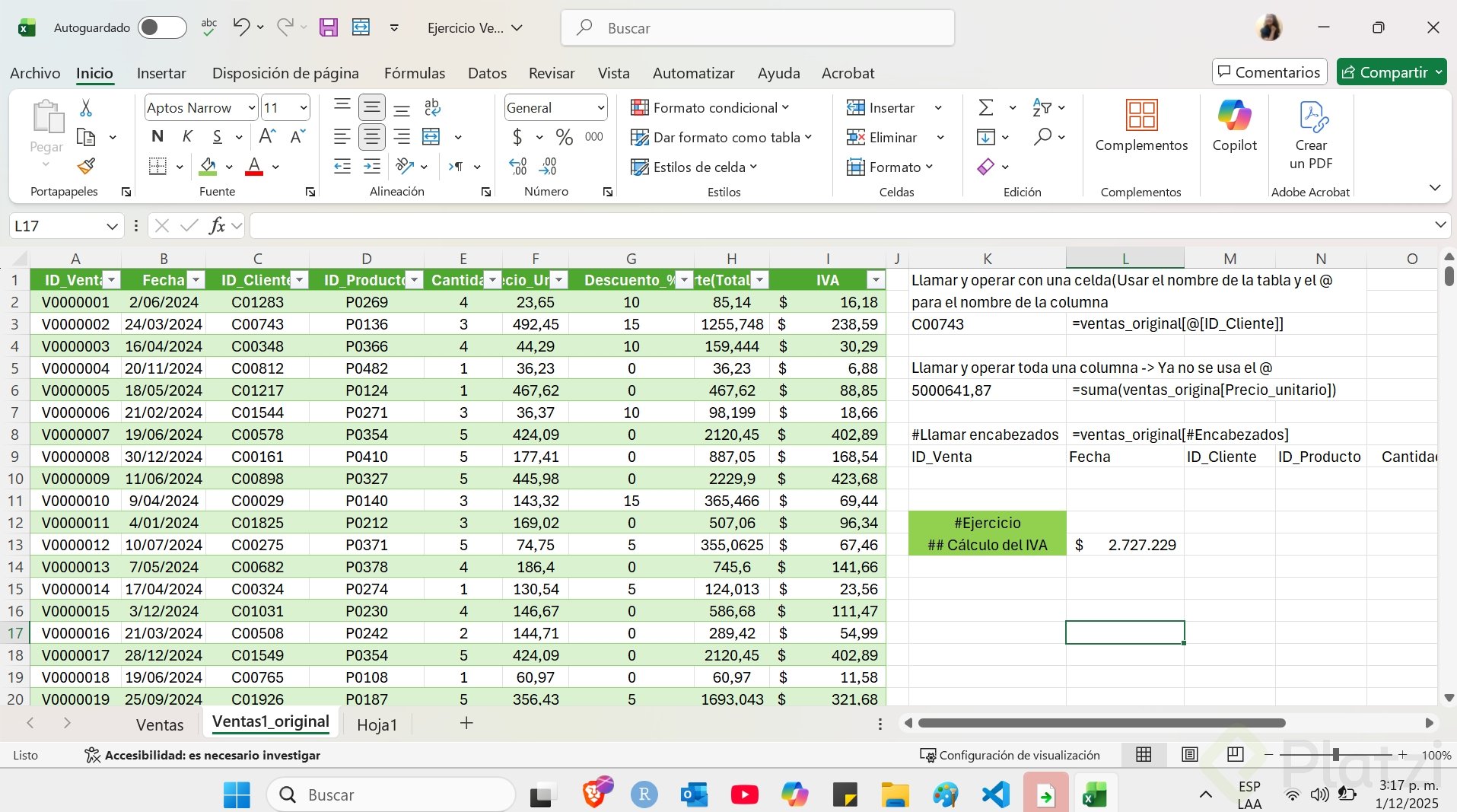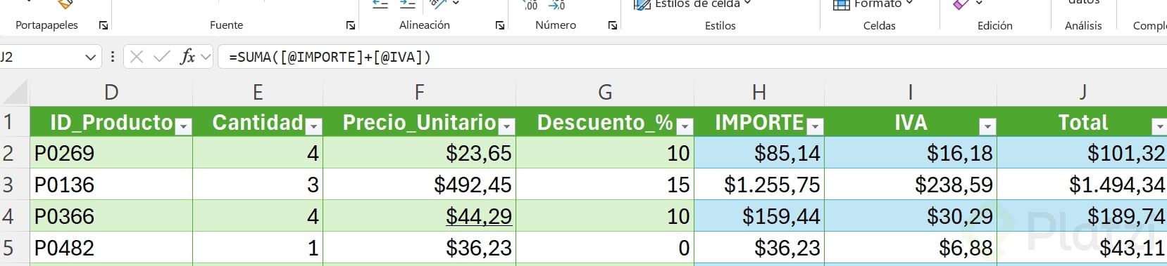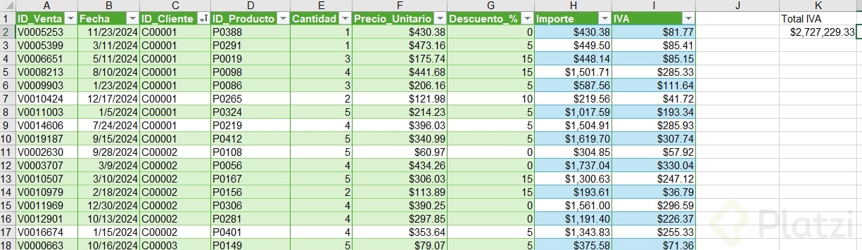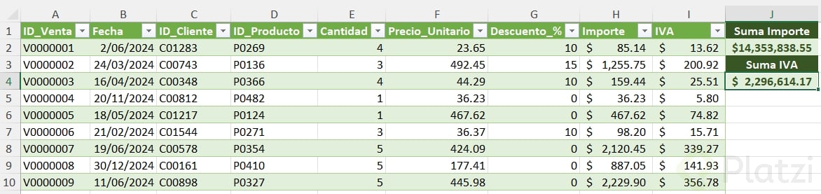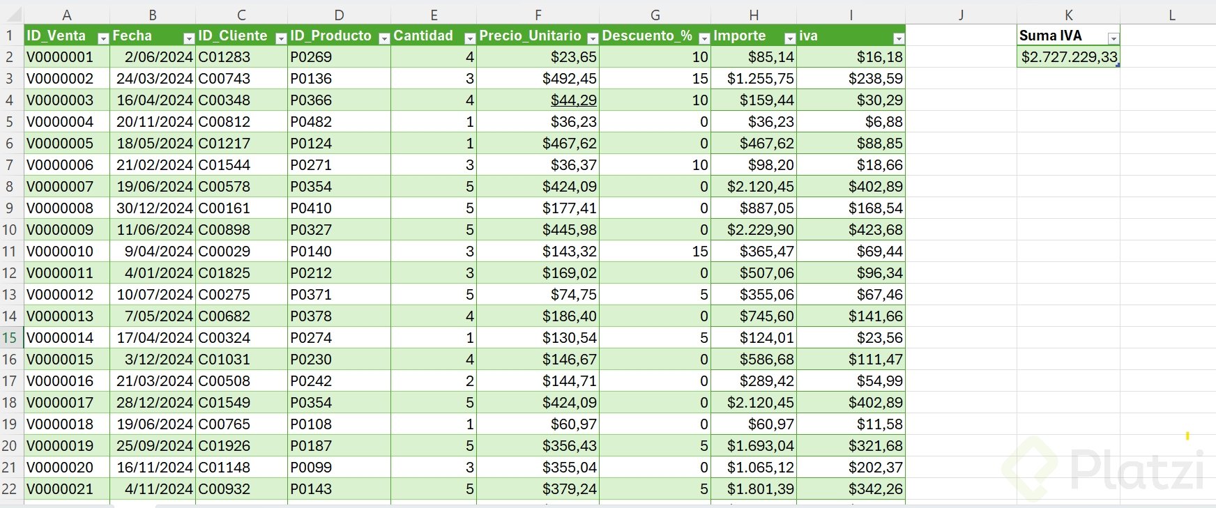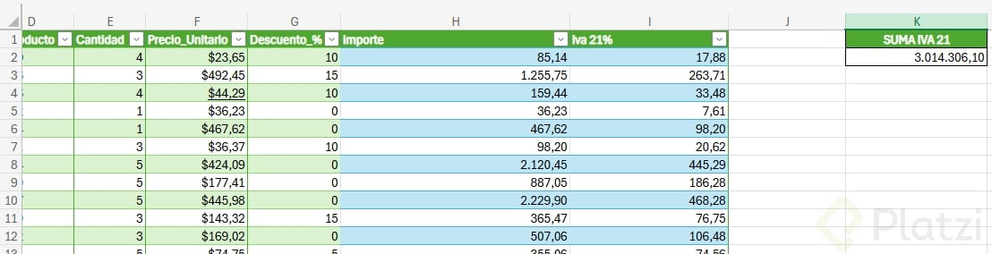 Todo lo anterior son referencias dinámicas en tablas. Ahora, un reto práctico: crea el IVA con referencia dinámica dentro de tu tabla y luego calcula la suma solo del IVA también con referencias dinámicas. ¿Te animas? Comparte tu captura de pantalla en comentarios y cuéntame cómo te fue.