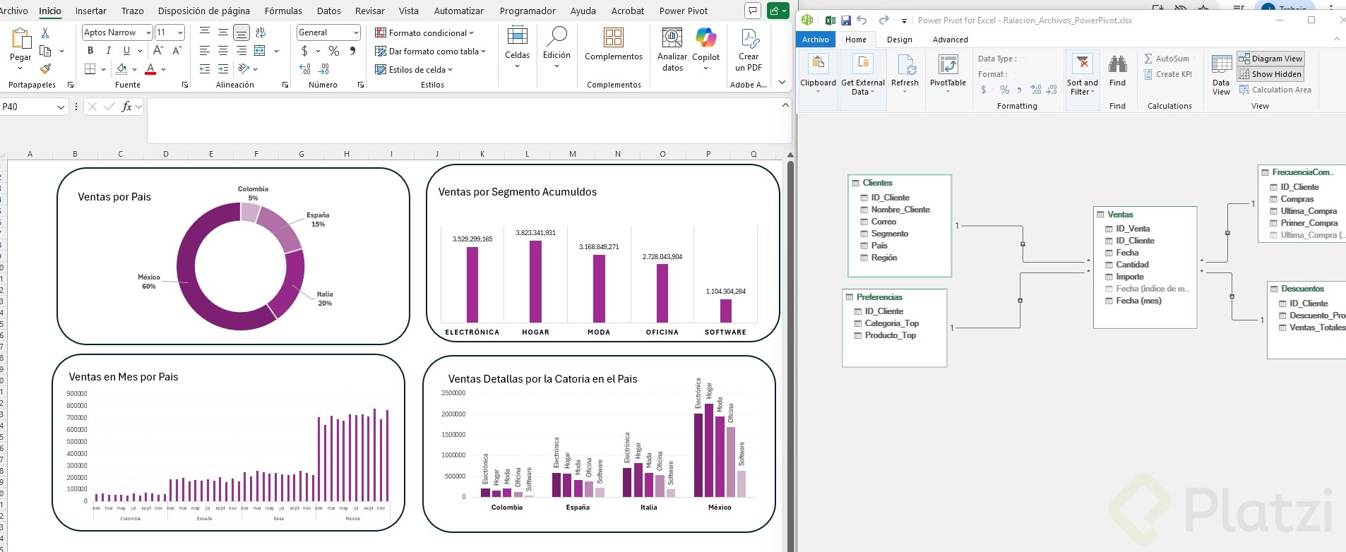 Si trabajas con muchos Excel y necesitas unificar reportes sin fórmulas complejas, PowerPivot en Excel te permite relacionar tablas de distintas fuentes, optimizar archivos y crear dashboards interactivos con tablas y gráficos dinámicos en minutos.