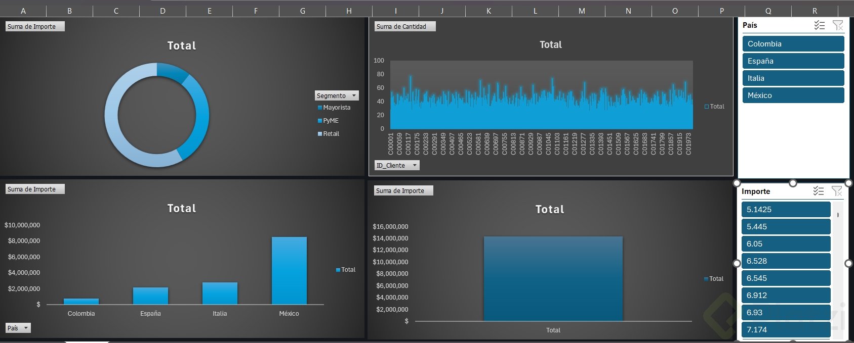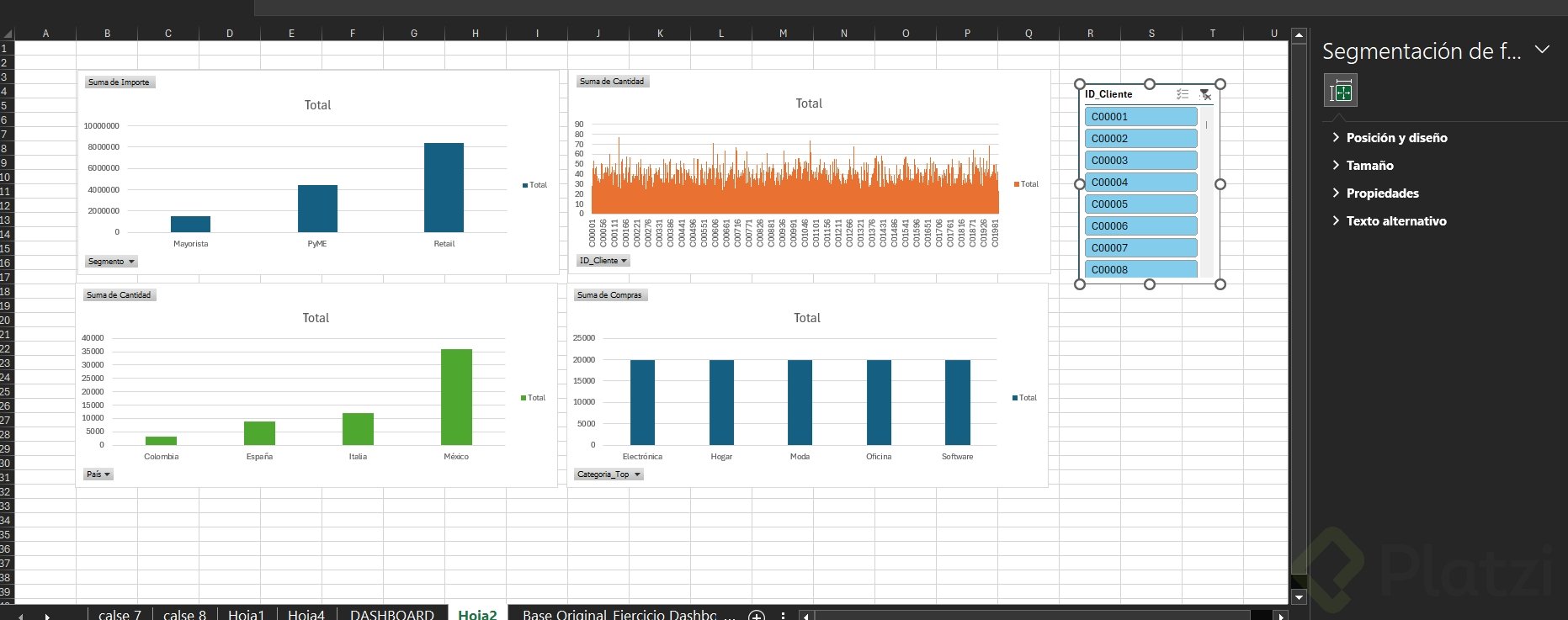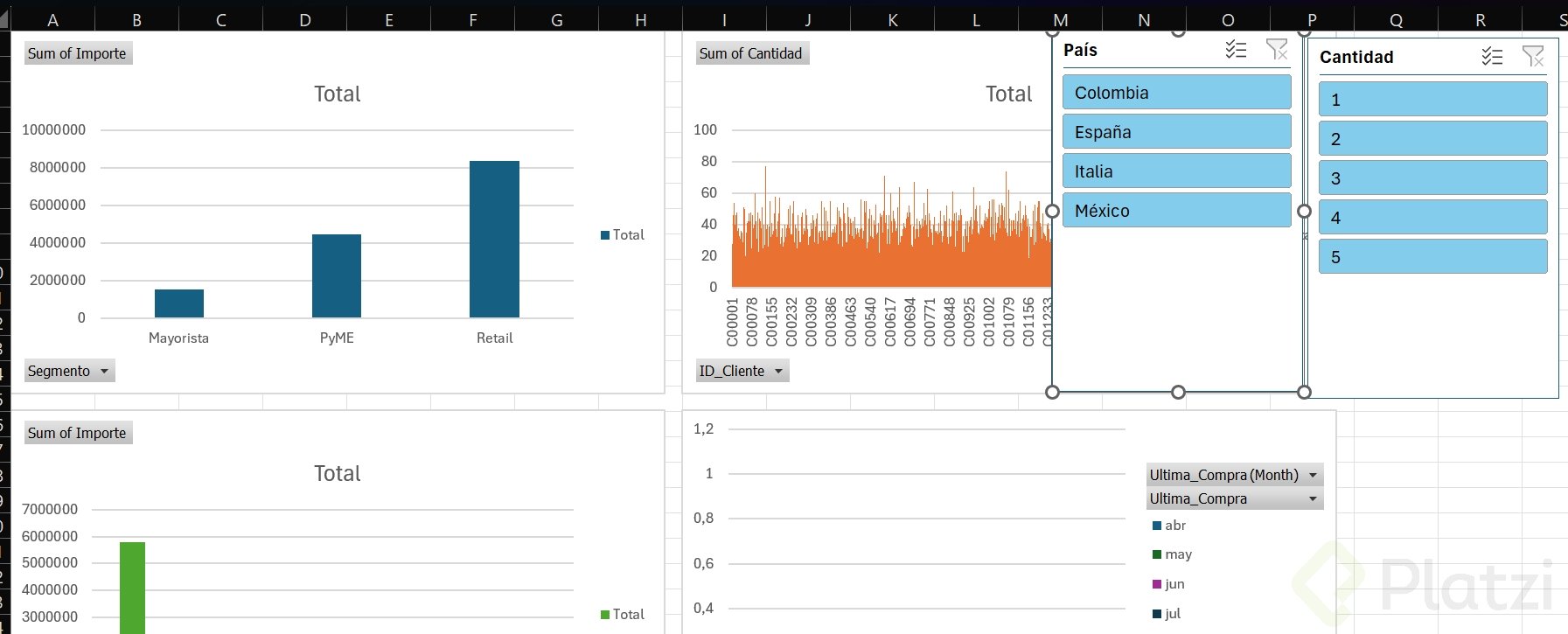 - Crea visualizaciones cruzando tablas: por ejemplo, ventas por segmento, ventas por preferencias o suma de compras.