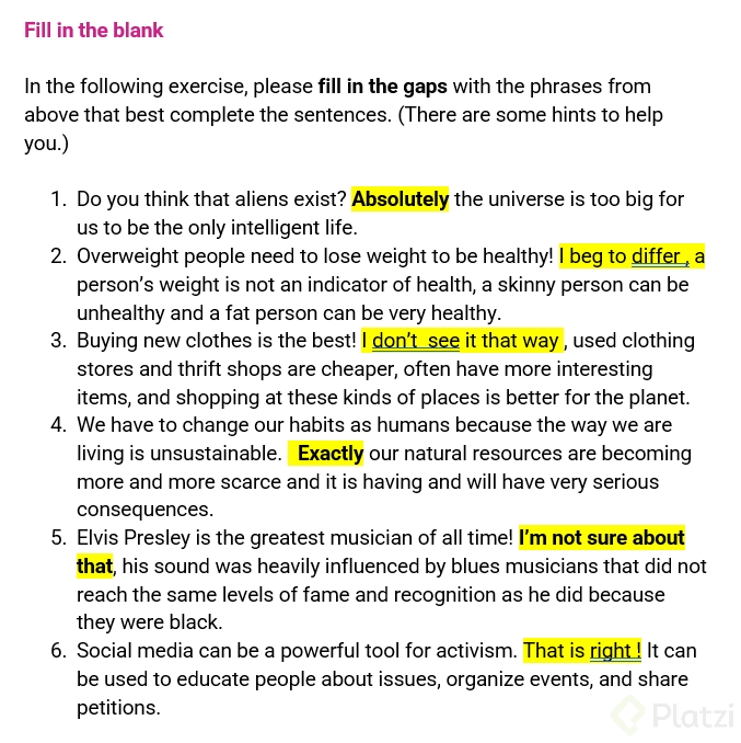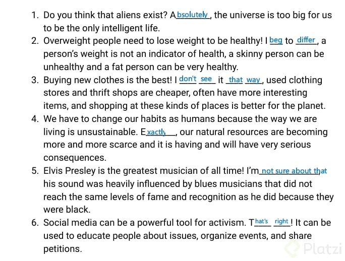 Expresar opiniones de manera clara y respetuosa es fundamental en un debate. ¿Cuáles son algunas frases útiles que puedes emplear al dar tu opinión, ya sea afirmando o rebatendo?