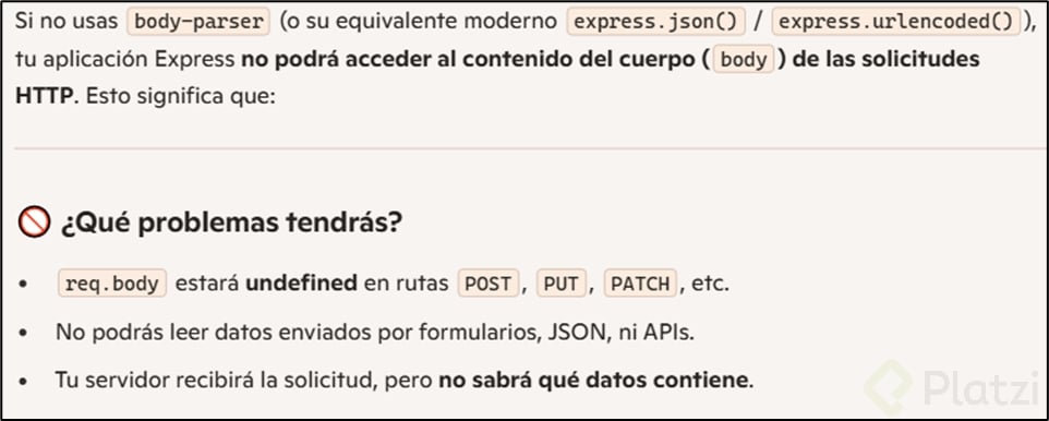 Cada uno de estos métodos puede requerir diferentes formas de procesar los datos entrantes, lo que hace que la configuración de body-parser sea esencial.