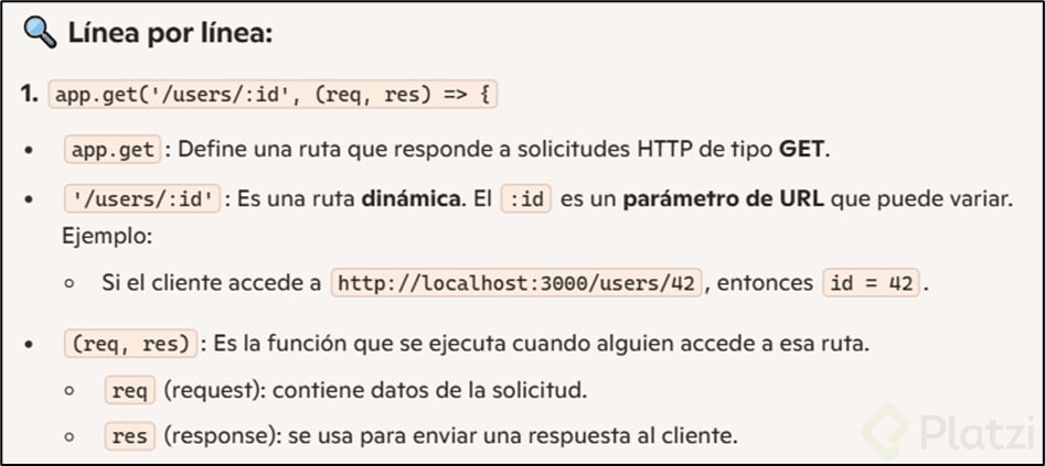 Al acceder a una URL como /users/123, nuestra aplicación capturará "123" como el valor de userId y responderá adecuadamente.