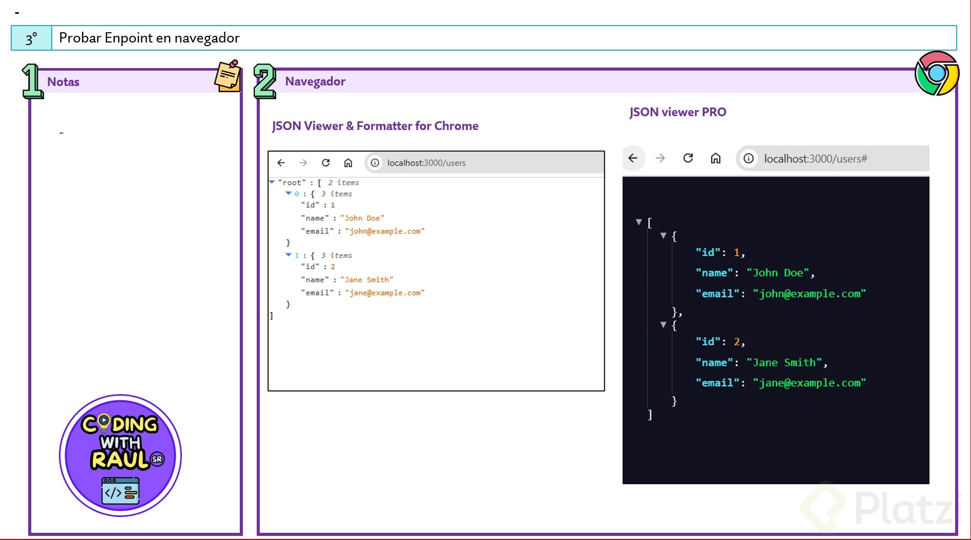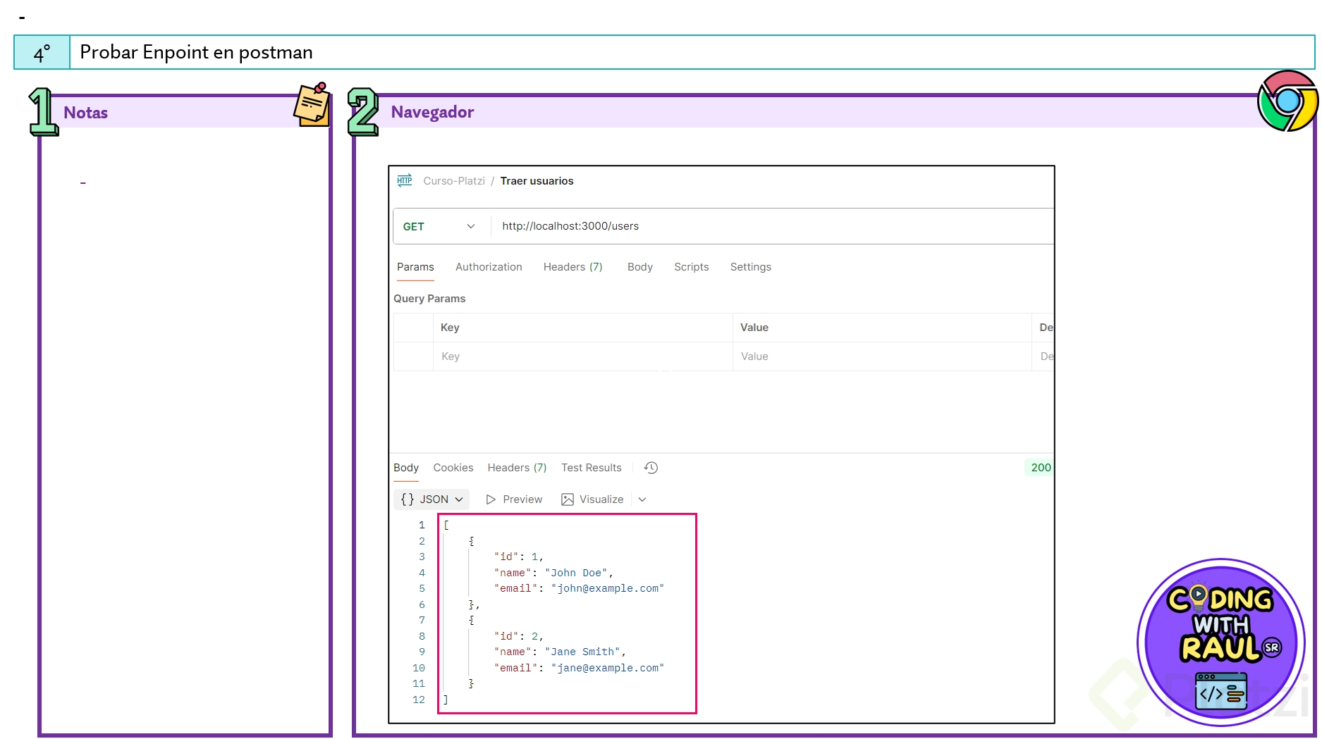 http://localhost:PUERTO/users - Postman: Una herramienta más robusta que nos permite documentar y organizar nuestras solicitudes API