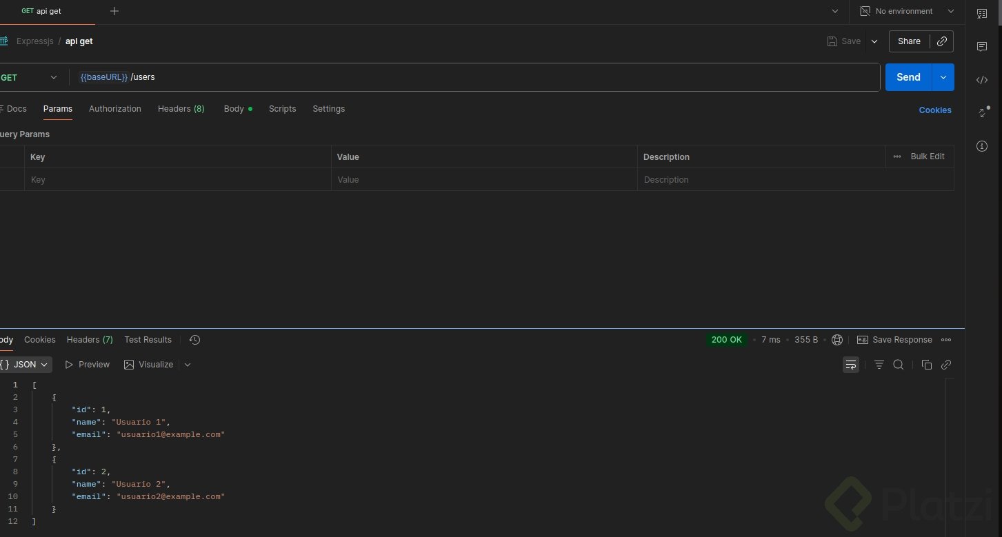 La implementación del método GET es solo el primer paso en la creación de una API RESTful completa. En las próximas secciones, exploraremos cómo implementar otros métodos HTTP como POST para crear nuevos usuarios en nuestra "base de datos" local.