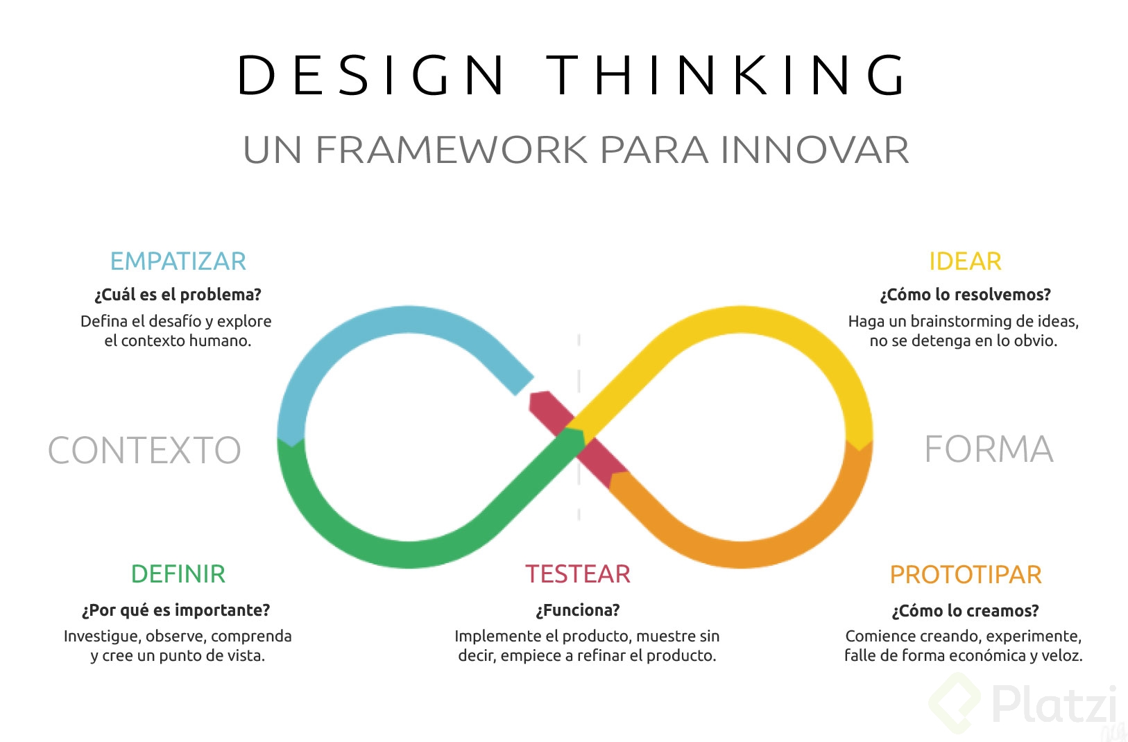 Este es otro proceso de diseño muy popular, se trata de una metodología desarrollada en 1970 en la Universidad de Standford. El Design Thinking es una estrategia para generar ideas y resolver problemas centrados en las necesidades reales de las personas.