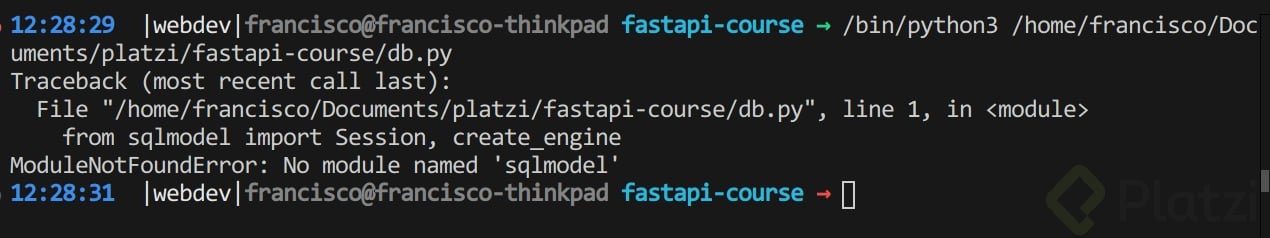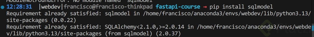 pip install sqlmodelTambién es recomendable registrar las dependencias en un archivo