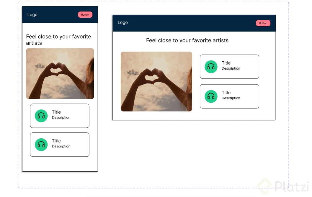 Por ejemplo, en la variante Desktop, el texto se centra y las imágenes y cards pueden tener un diseño particular que se adapte a pantallas más amplias.