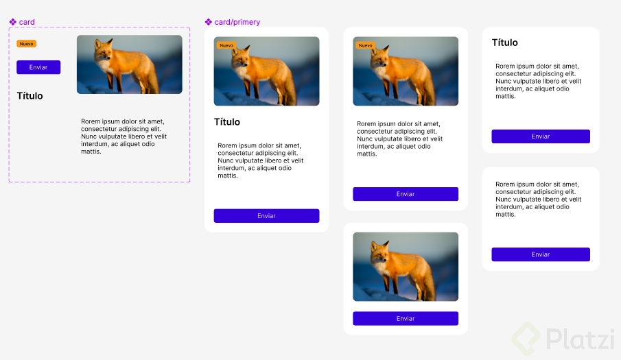 - Interactividad: Al crear una instancia del componente, se puede manipular visualmente para adaptarse a diferentes necesidades sin cambiar el componente original.